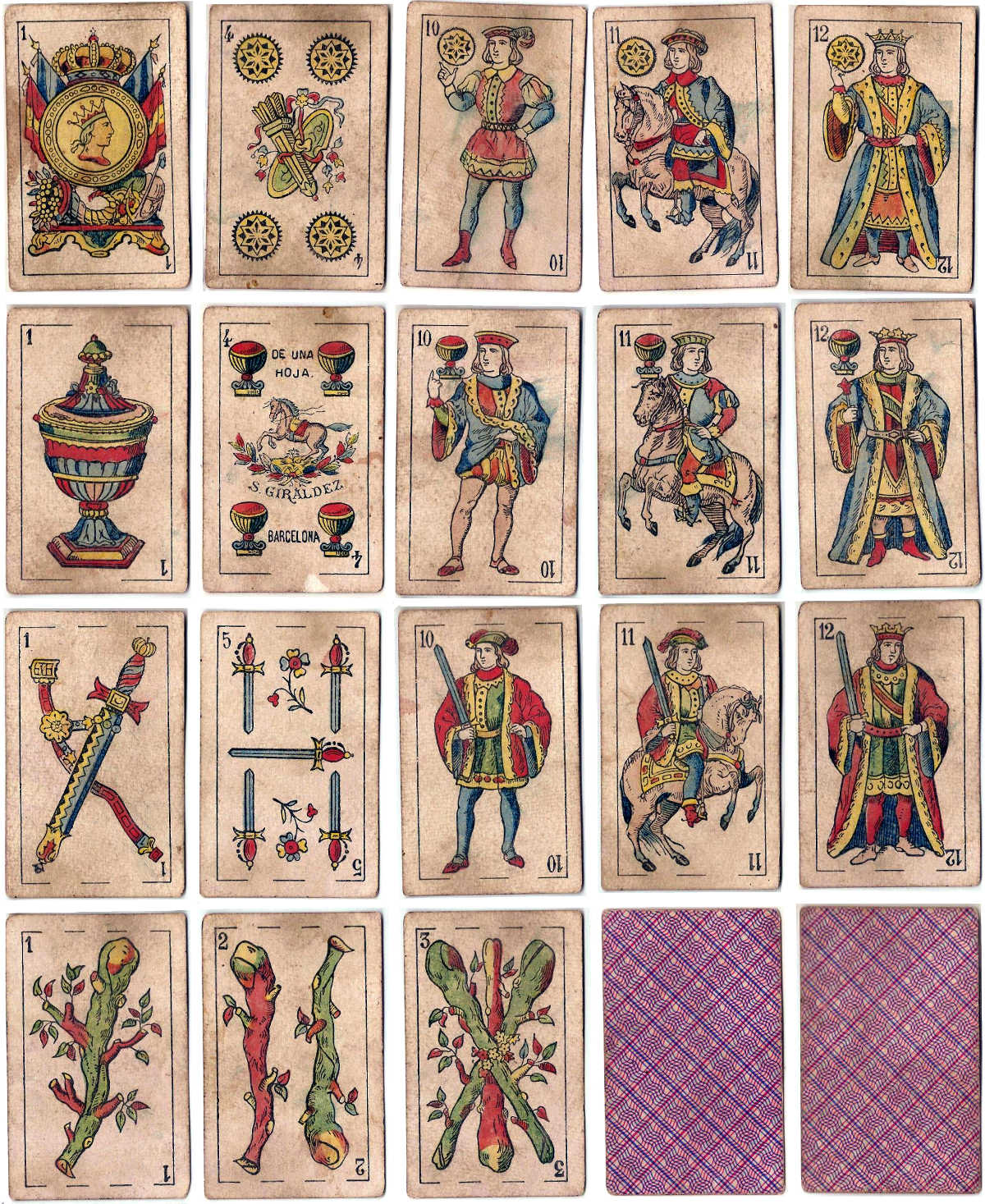 Standard Spanish Catalan pattern playing cards by S. Giráldez, Barcelona, c.1905.