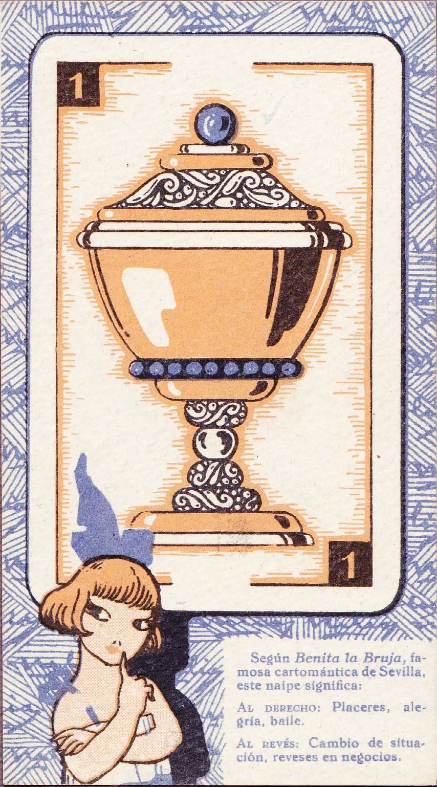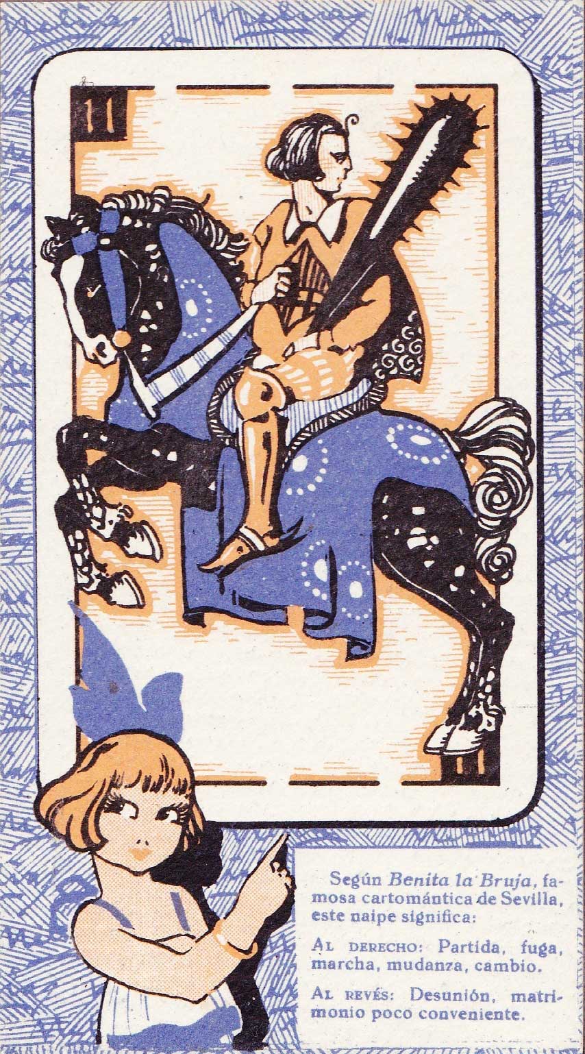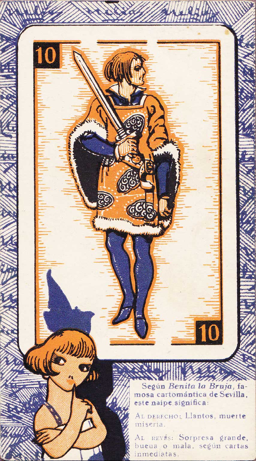 Cartomantic meanings of Spanish playing cards by Benita the Witch (XVI century), published by Chocol...