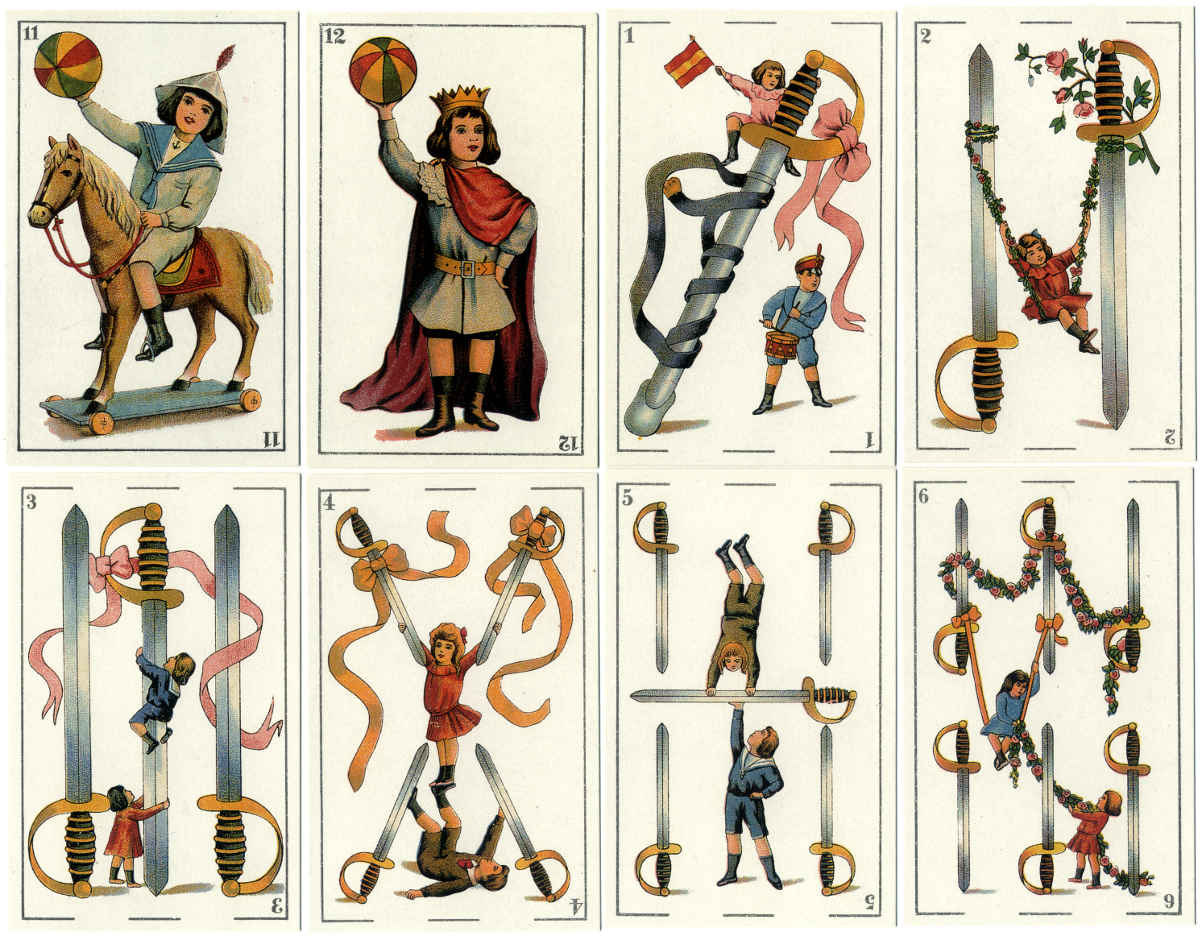 Above: cards from facsimile edition by El Sendero of 40 card version of a design originally published in c.1896 and re-issued in 1930s by Litografías Industrias Madriguera, Barcelona. 97x61mm.