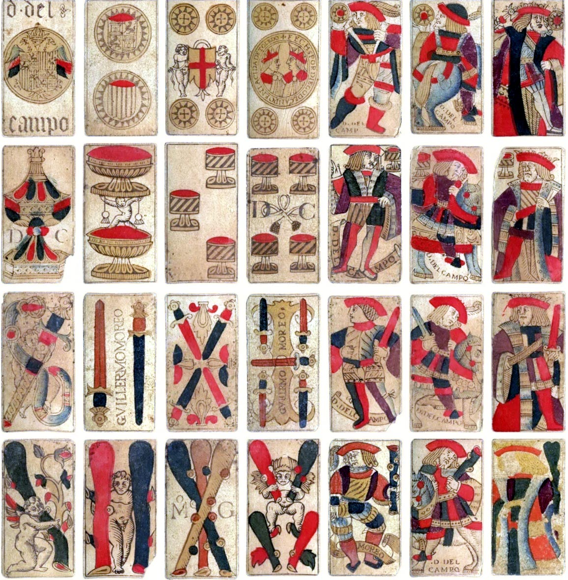 Archaic Spanish-suited deck with 48 cards made in Toledo in 1584.