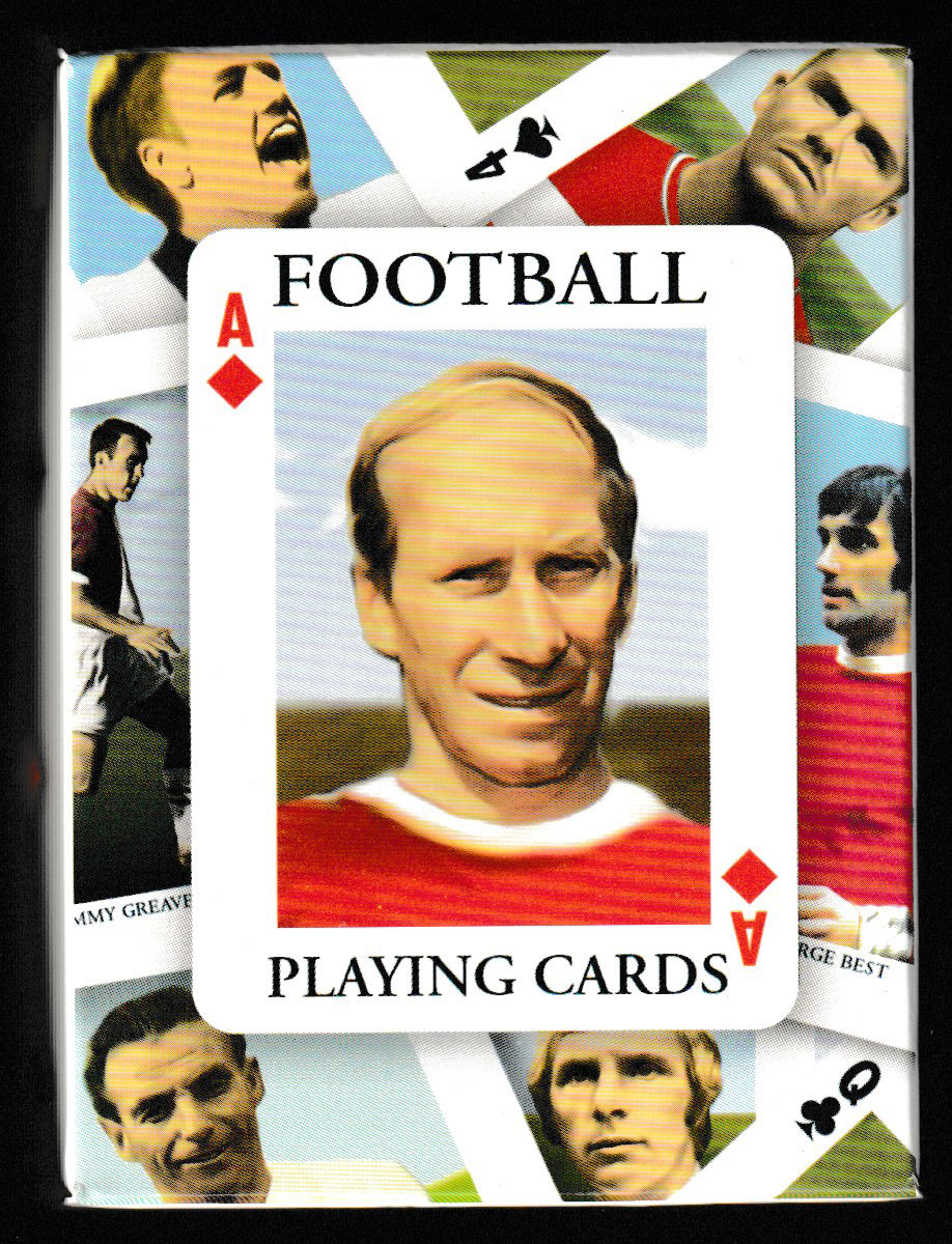 Above: 52 different legends from the world of football playing cards printed by Offason AB, Sweden, c.2004. 52 cards + 4 Jokers in drop-lid box. Size: 63 x 84 mm.