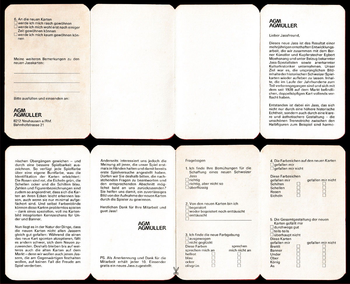 Unfortunately, the second edition was not particularly popular either. AGM were clearly keen that this pack should be accepted and played with as they included a questionnaire in German with the second edition asking players what they thought of the cards. One wonders what responses they received - RS.