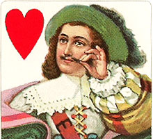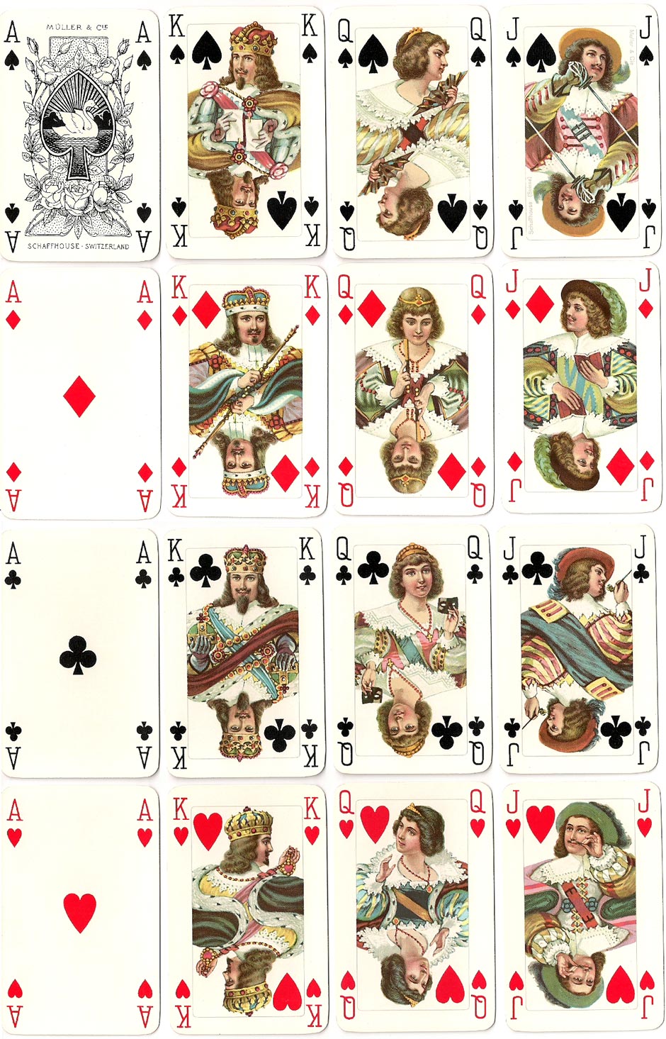 The double-ended fantasy courts cards depict characters from the French court in 17th century period costume. The special Müller Ace of Spades and Joker complete the set.