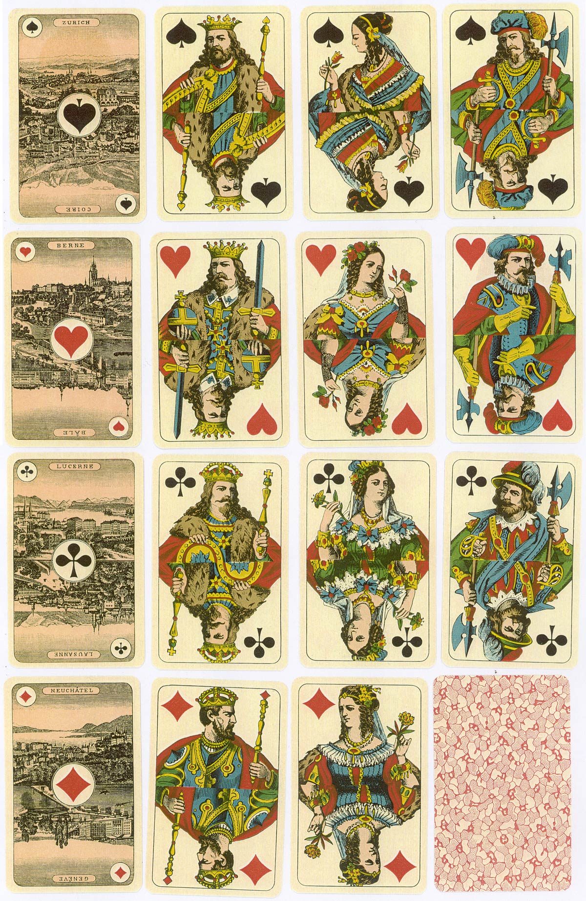 French-suited playing-cards in the Paris pattern appeared in Switzerland around the end of the sixte...