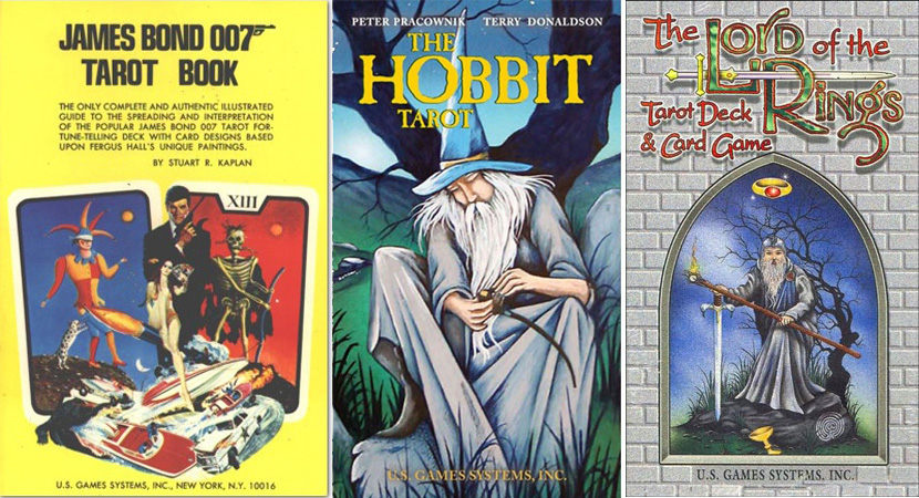 James Bond Tarot (1973), The Hobbit Tarot (2012) and The Lord of the Rings Tarot (1997), all published by US Games Systems.