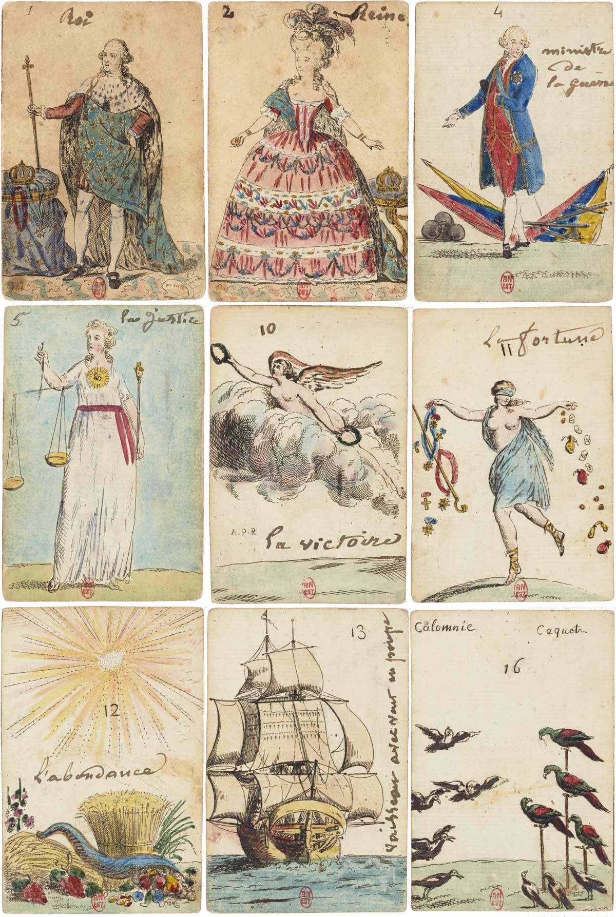 Early French Cartomancy deck "for the amusement of Ladies" but also referred to as "Jeu divinatoire révolutionnaire", 1788.