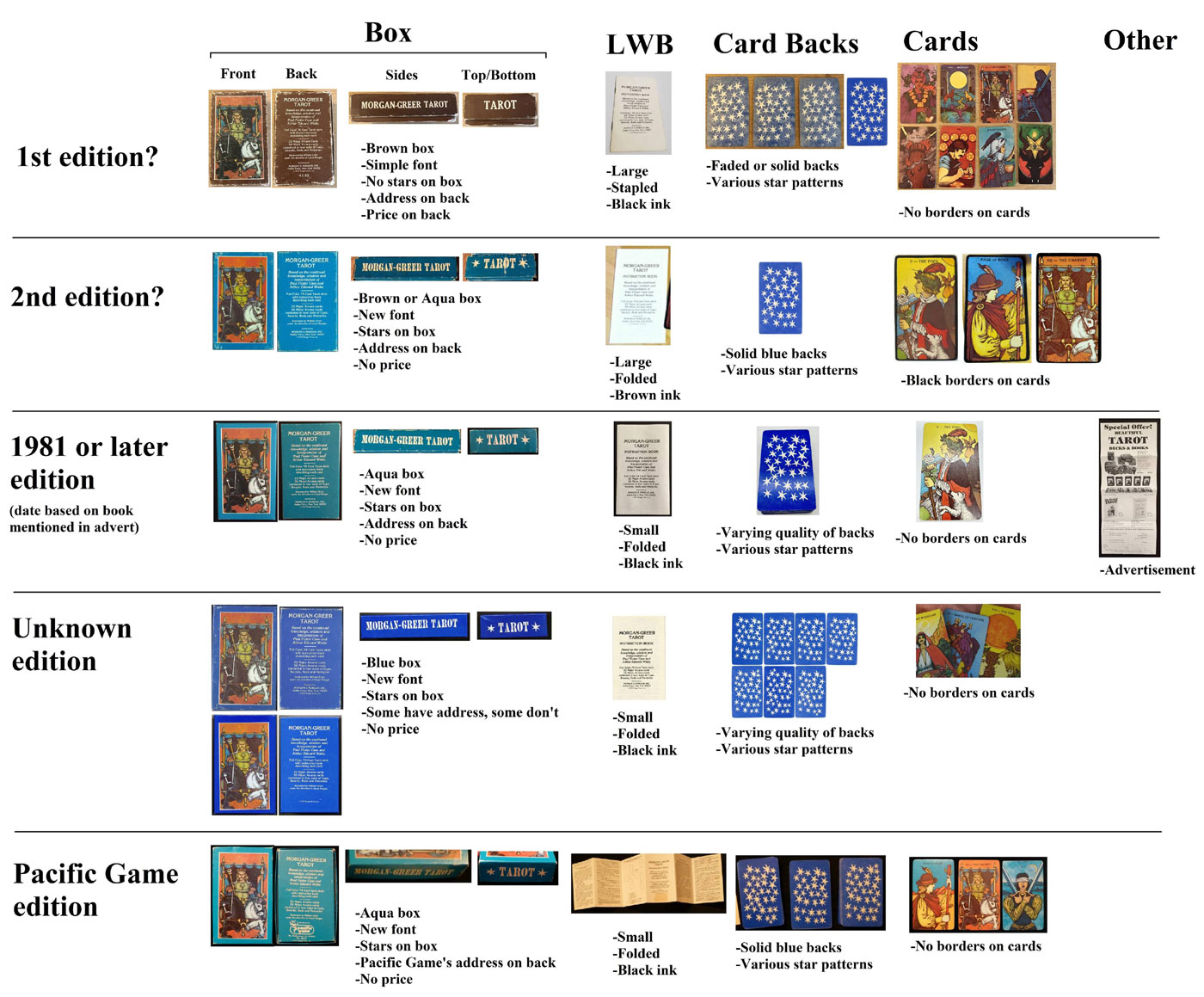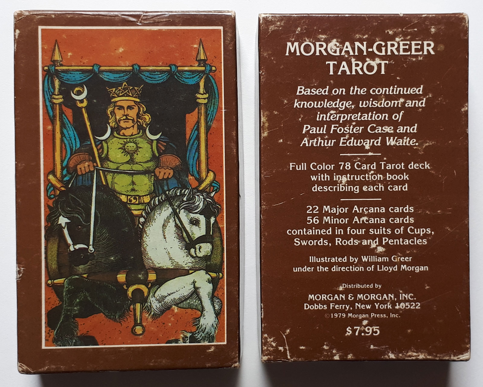 The name of the company changed from Morgan Press Inc., for the Aquarian Tarot Deck, to Morgan & Morgan Inc., for the Morgan-Greer deck. Both have the address of Dobbs Ferry, New York 10522, which is on the back of both boxes. These are the only two tarots they ever produced that I am aware of.
