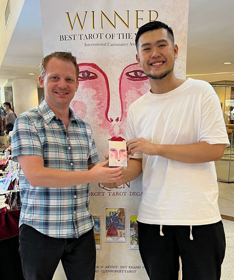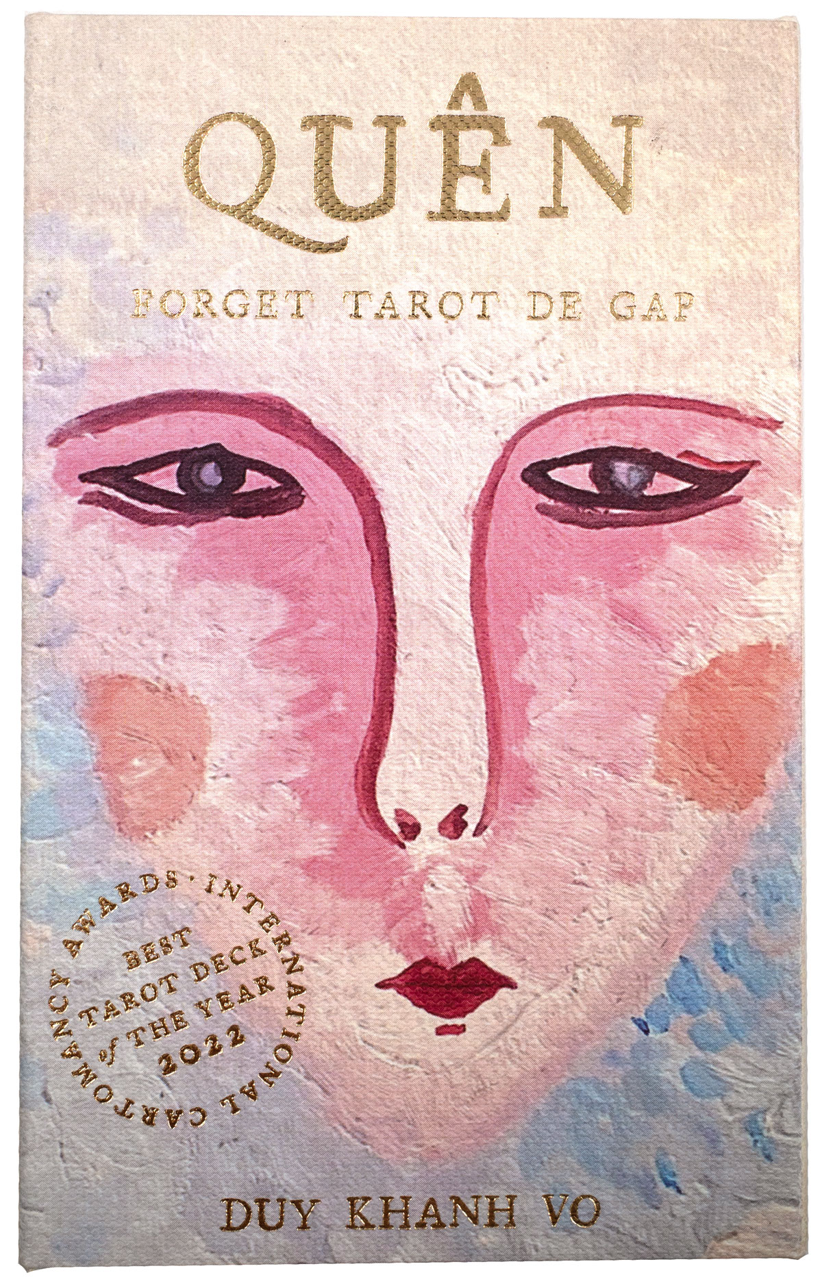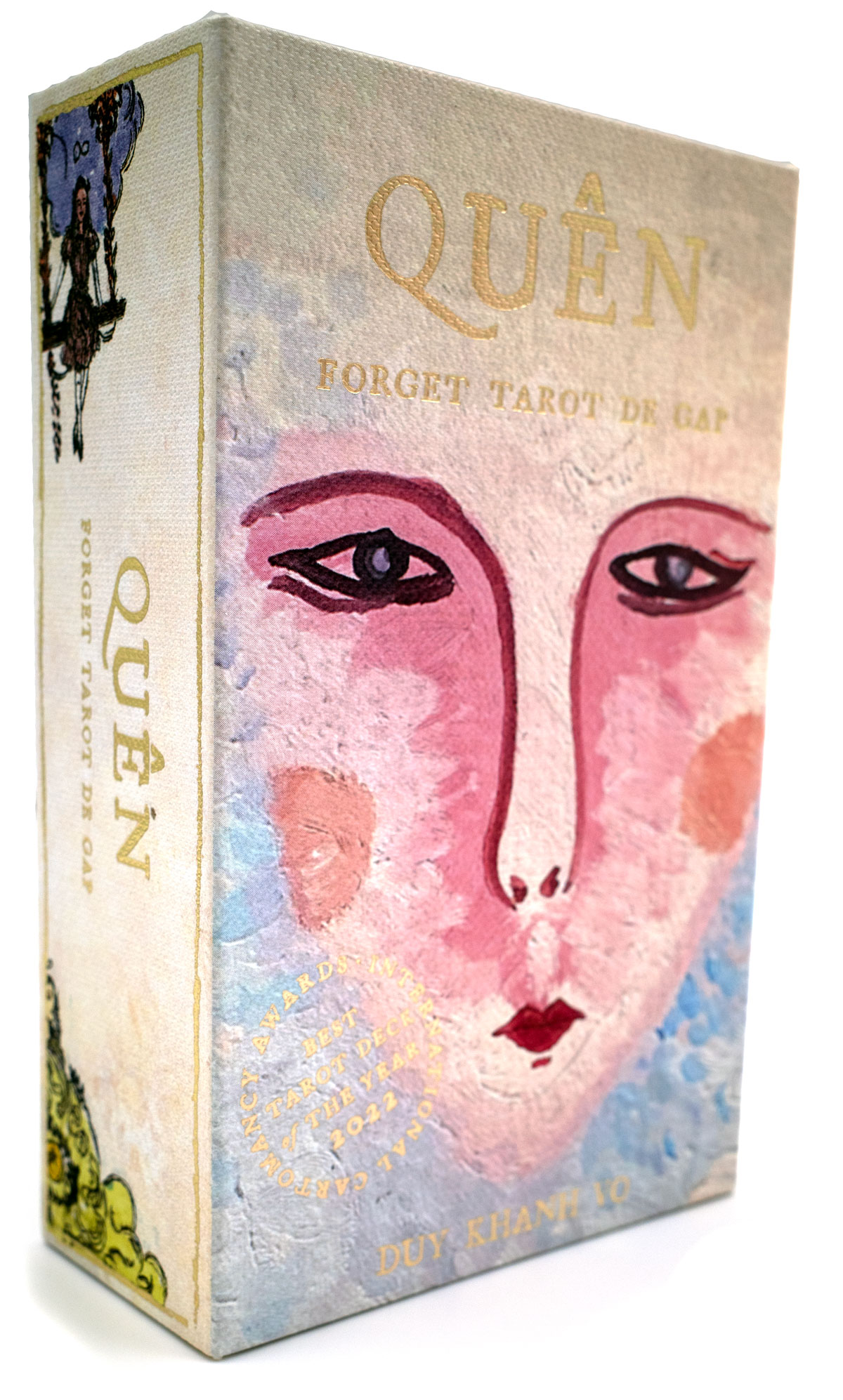 Above: the front of the box. The sub-title "Forget Tarot de Gap" refers to distance and also to meeting up again in the future. In 2022 his Quên Tarot won CARTA Awards’ Best Tarot Deck of the Year.