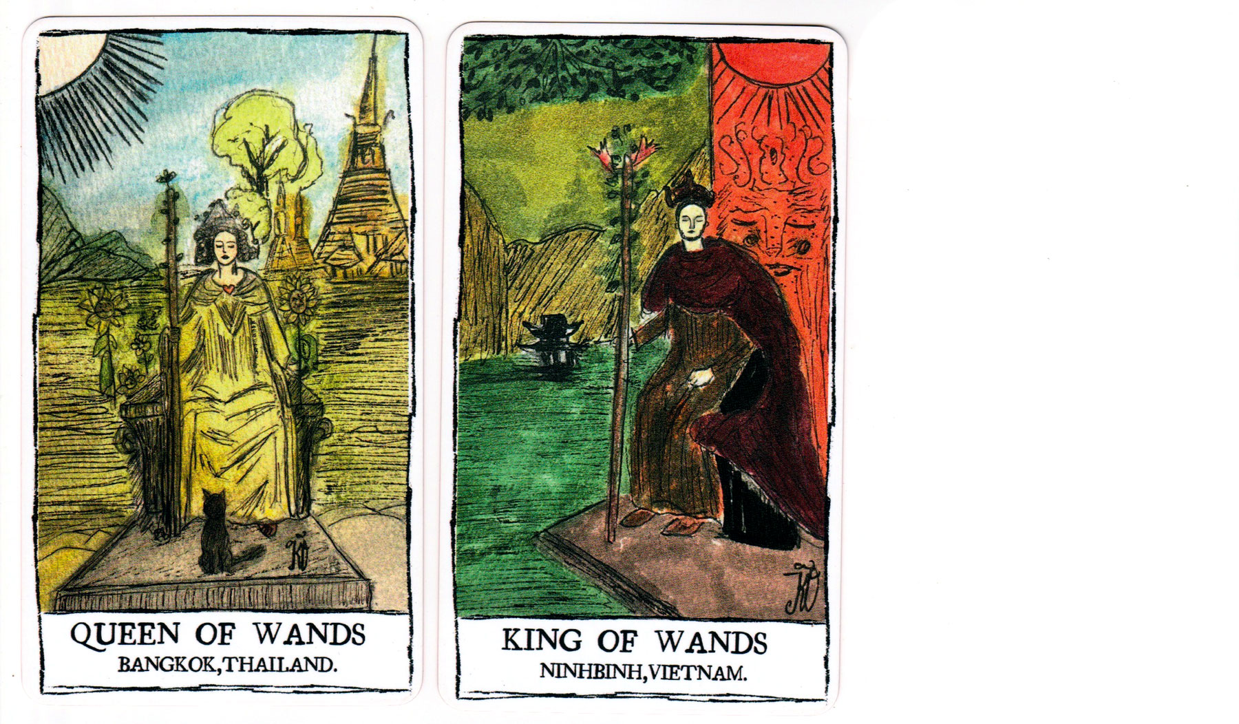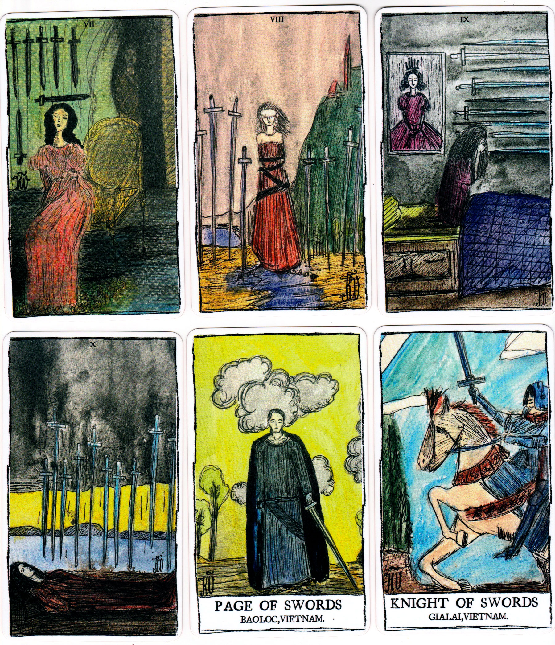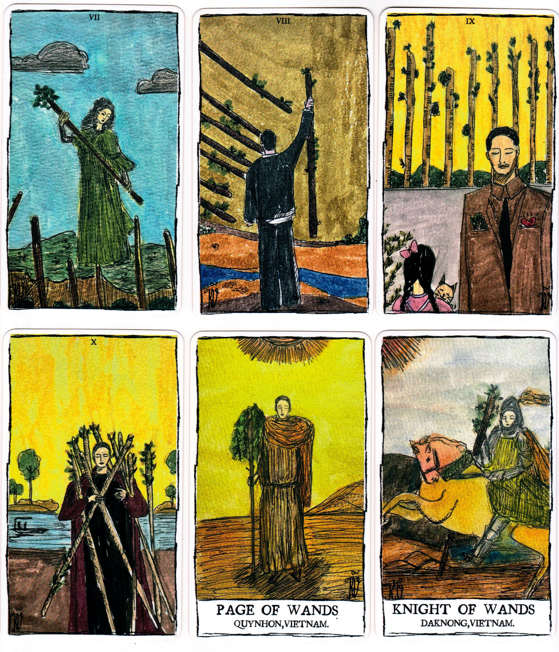 The cards were created by Duy Khánh Võ, an artist based in Vietnam. For ease of use, Võ based the deck based on the modern Rider-Waite system. Through his reimagining he expands Pamela Colman Smith's theatrical style to encompass a Southeast Asian cultural perspective.