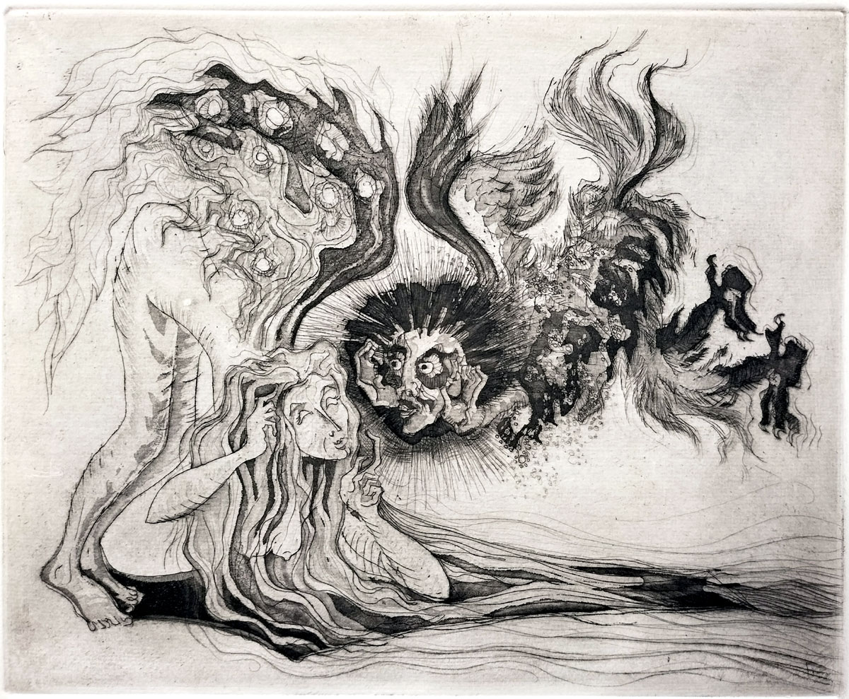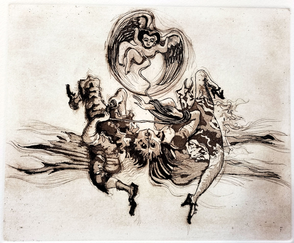 As we peruse and contemplate these images, we may get the impression that the artist's view of life is like a hallucinatory passage through chaos and absurdity, driven by forces we don't fully understand. But look deeper and it becomes a call to remain fully human even when life is absurd, and never stop reaching for meaning, for love or for something beyond ourselves... a resilient, poetic and mystical hope or strategic optimism.
