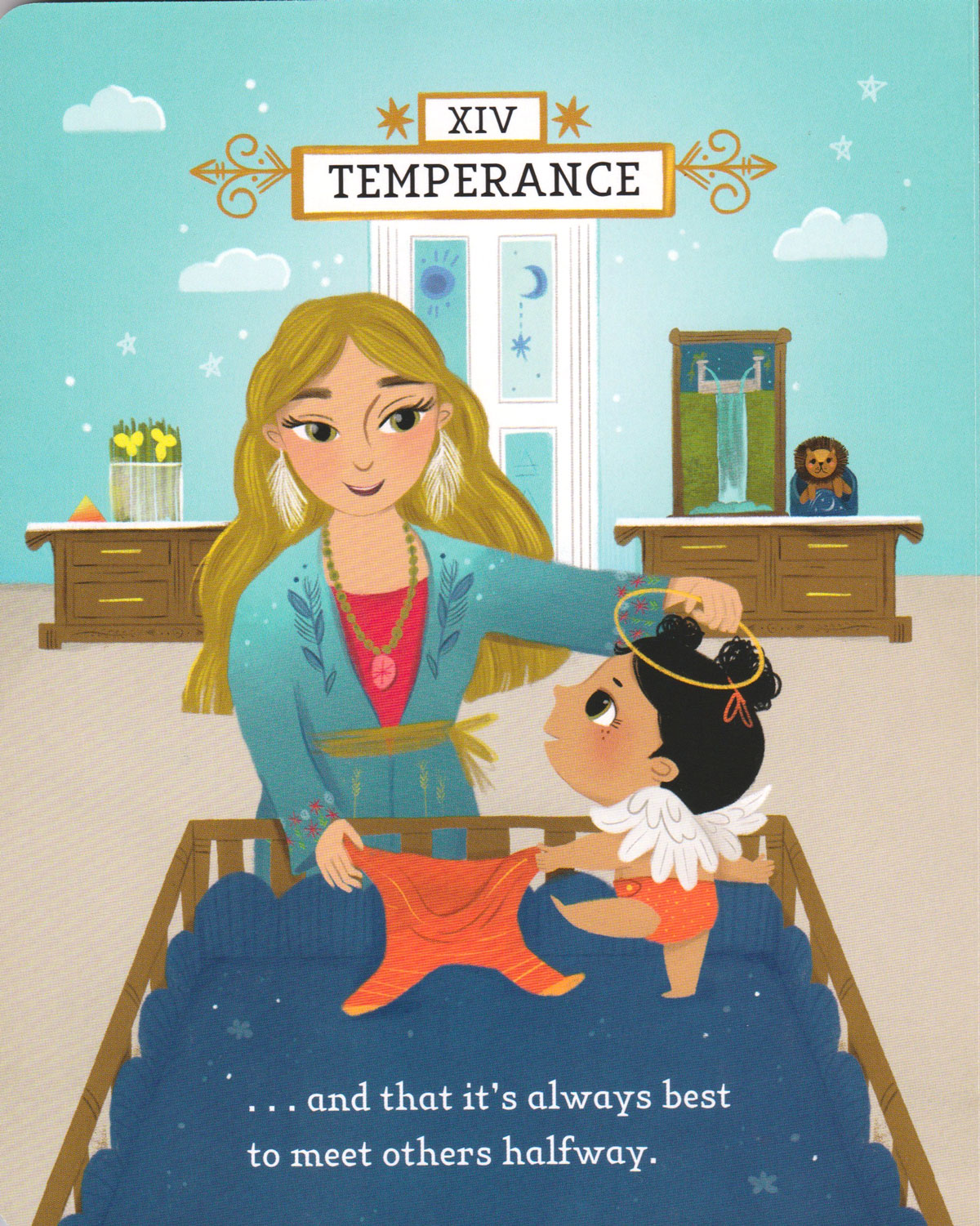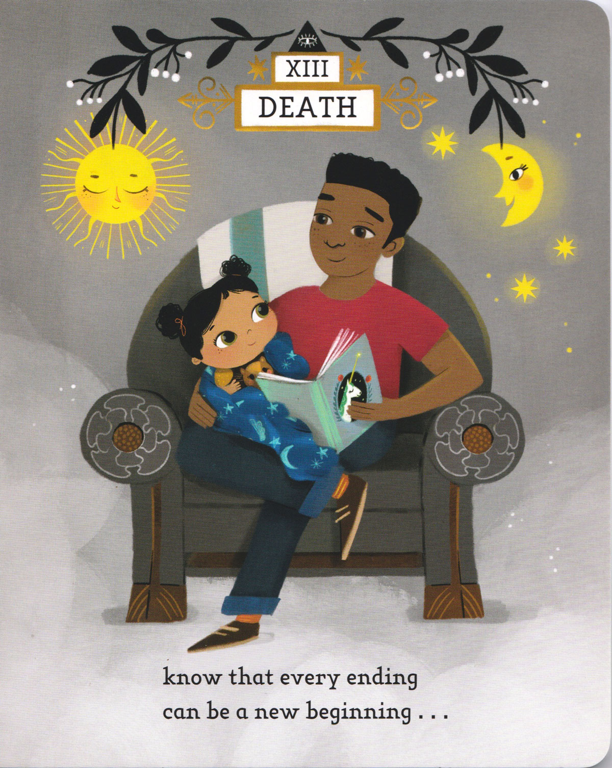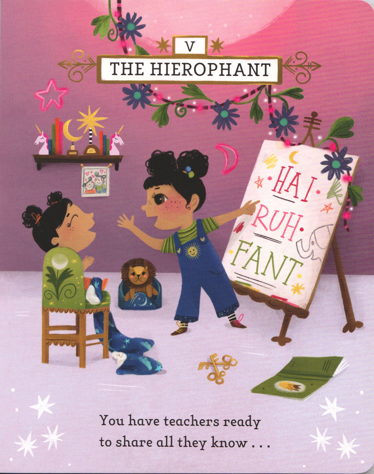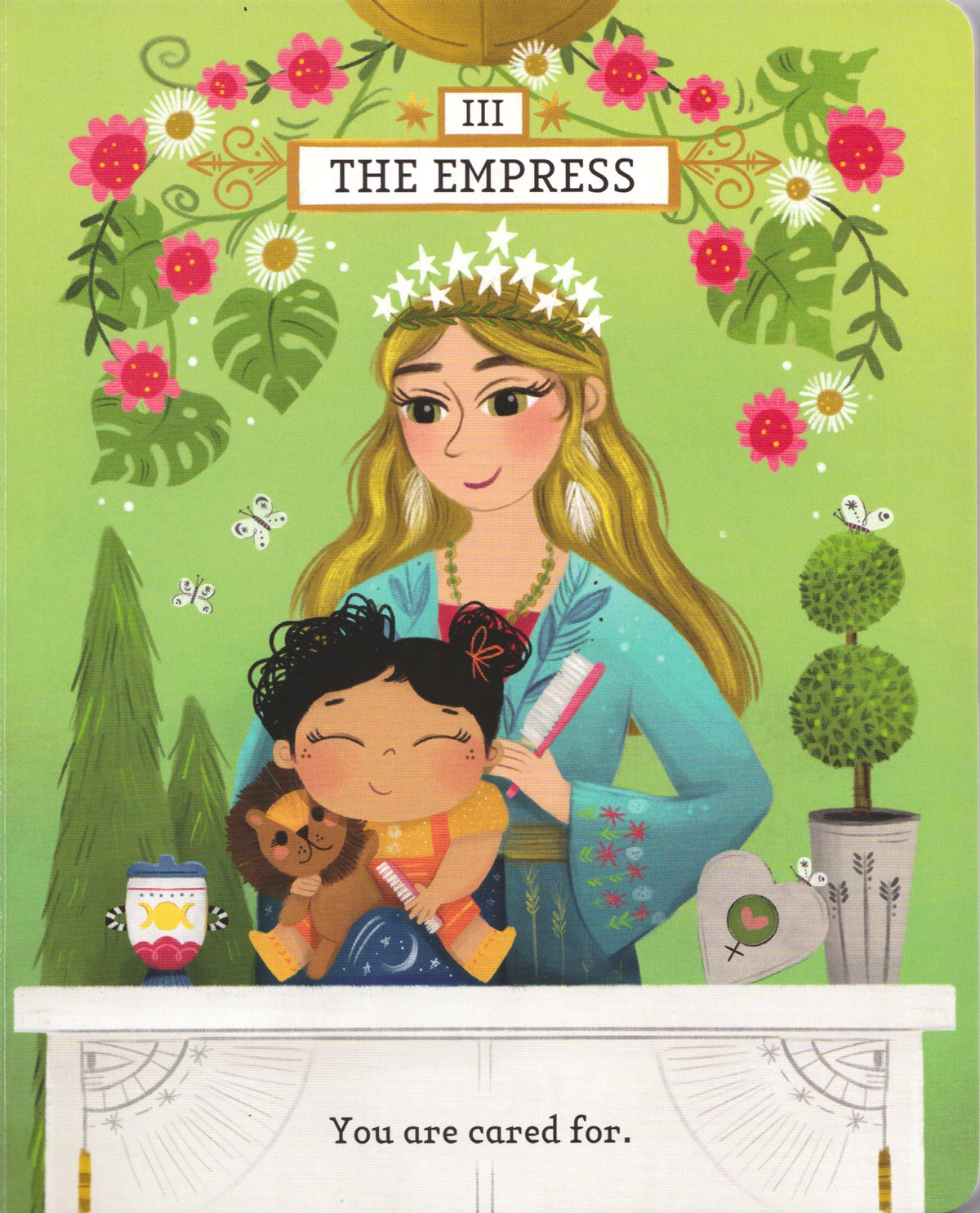 This board book simplifies tarot archetypes into accessible affirmations for young children.