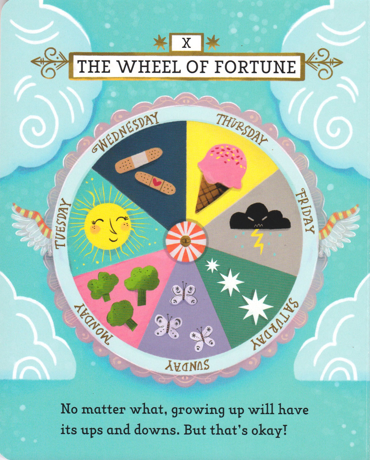 The book presents the 22 major tarot archetypes in a simplified spiritual and philosophical format. While the child-oriented, upbeat affirmations are designed to resonate with parents' values, and integrate into the child's environment, they may not be meaningful to the child.