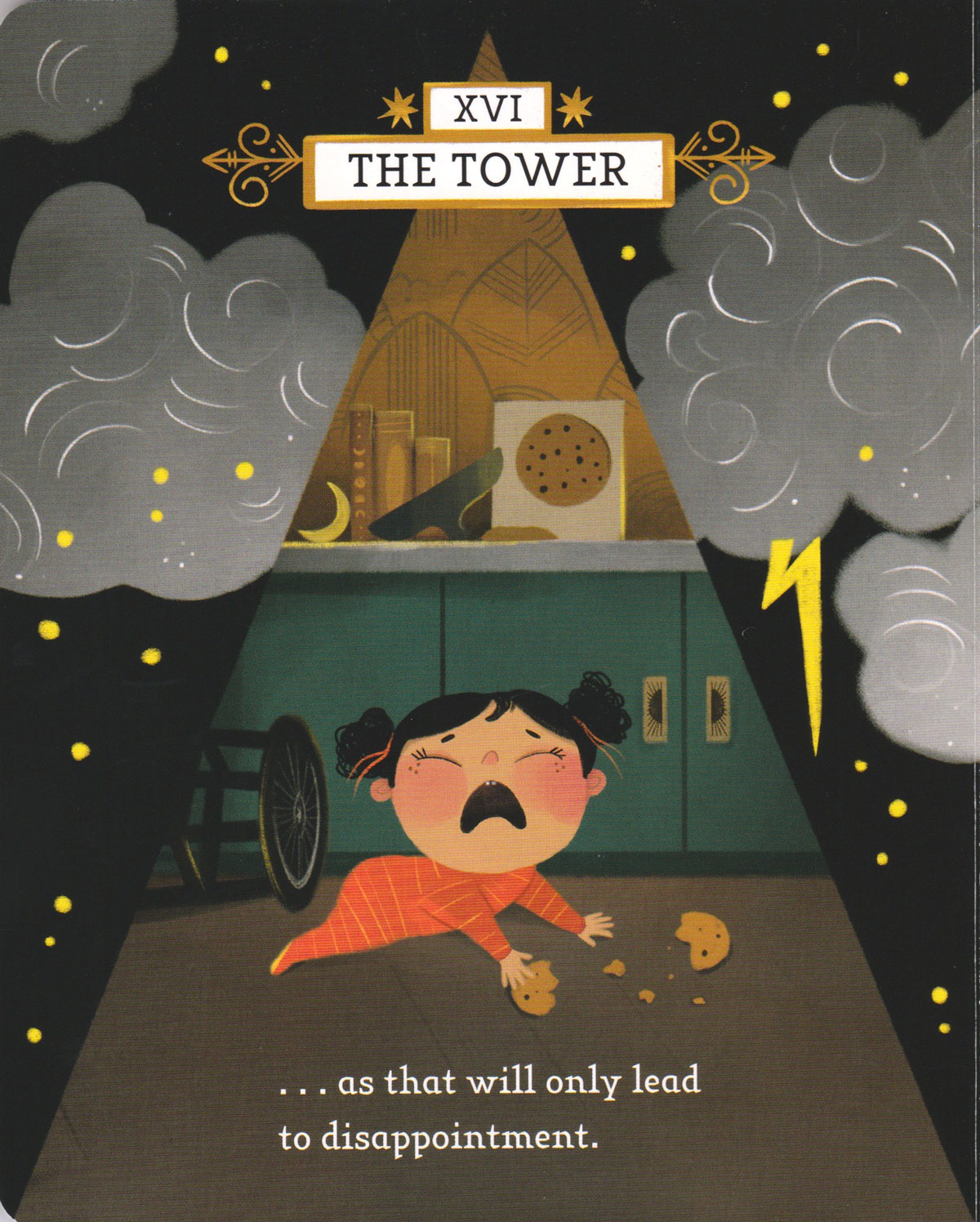 Above: cover of 'Tarot for Baby' featuring a young child wrapped in a starry cloak, holding a wand, against a starlit background.