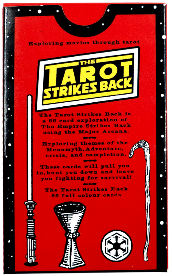 "Exploring movies through Tarot," Roy Huteson Stewart's The Tarot Strikes Back unites Star Wars with traditional tarot, offering a deck that includes 22 Major Arcana and additional art cards.