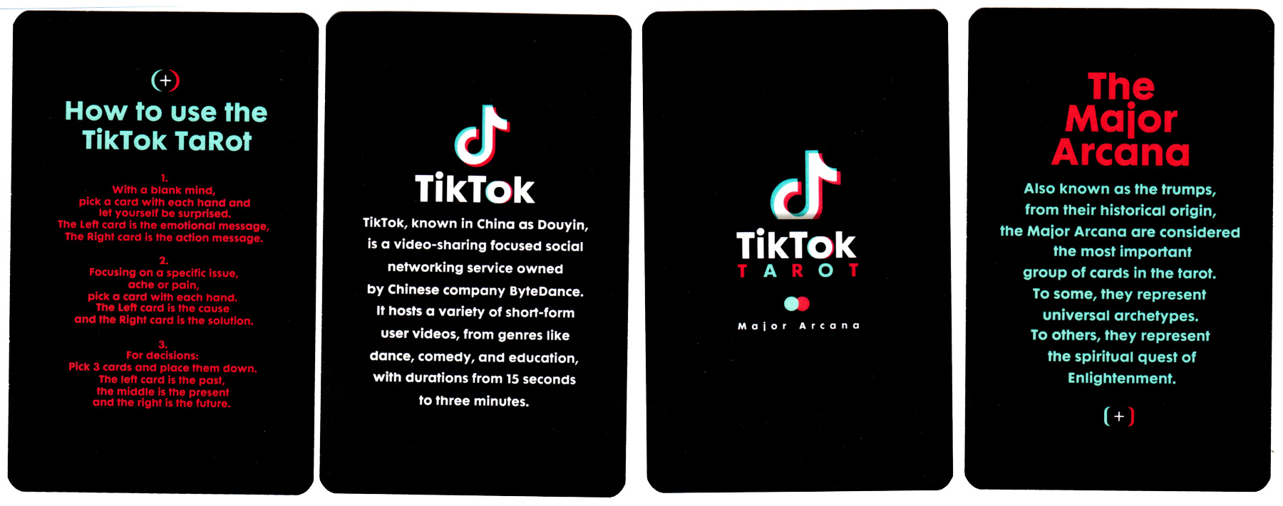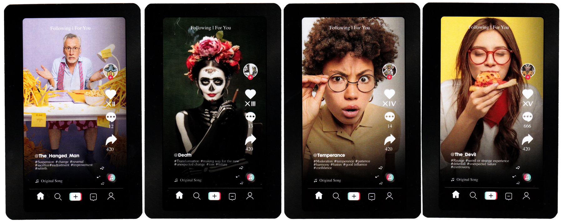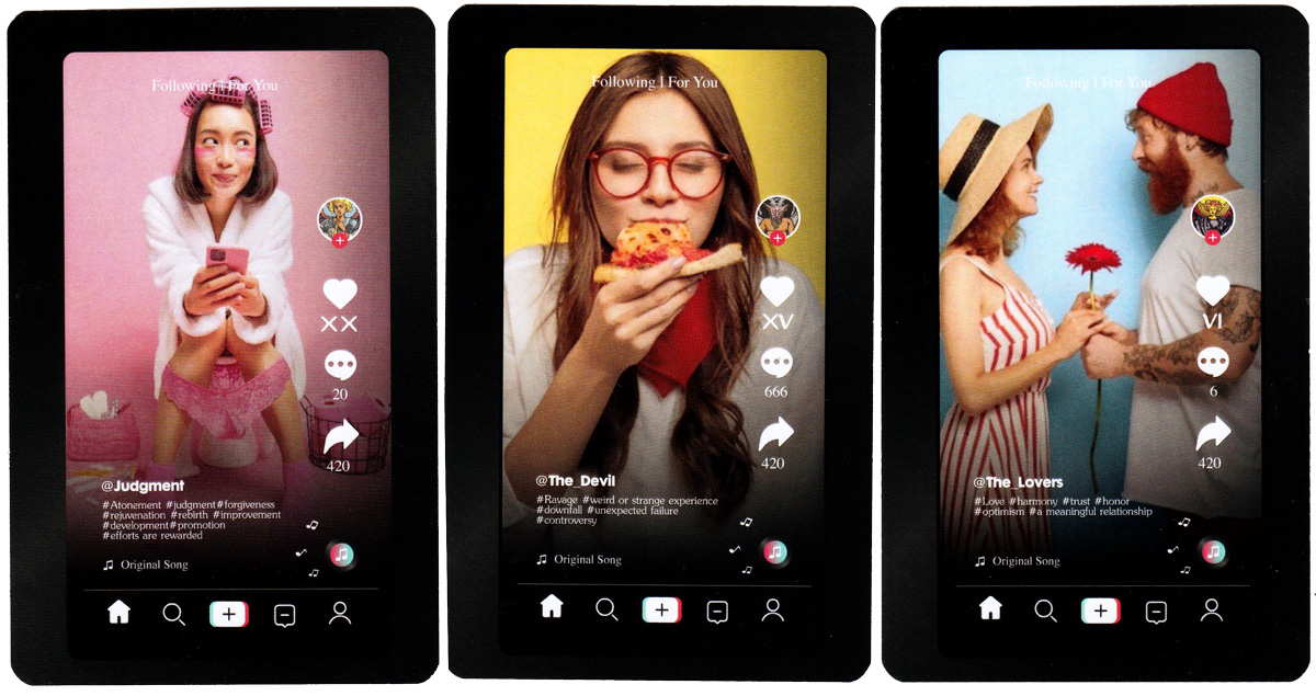 TikTok Tarot, created by Carmen Graf, is a unique tarot deck inspired by the Chinese video-sharing social network. In 2020, TikTok was downloaded more than any other mobile app in the world, surpassing Facebook, WhatsApp, and Instagram.