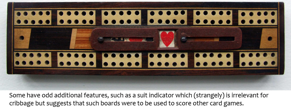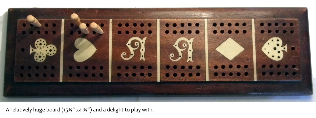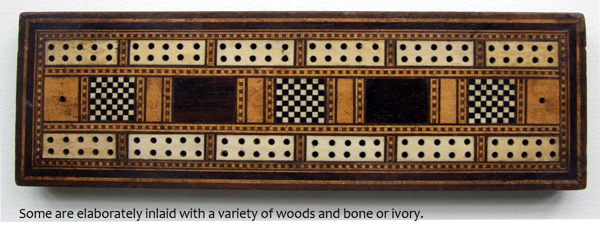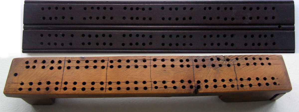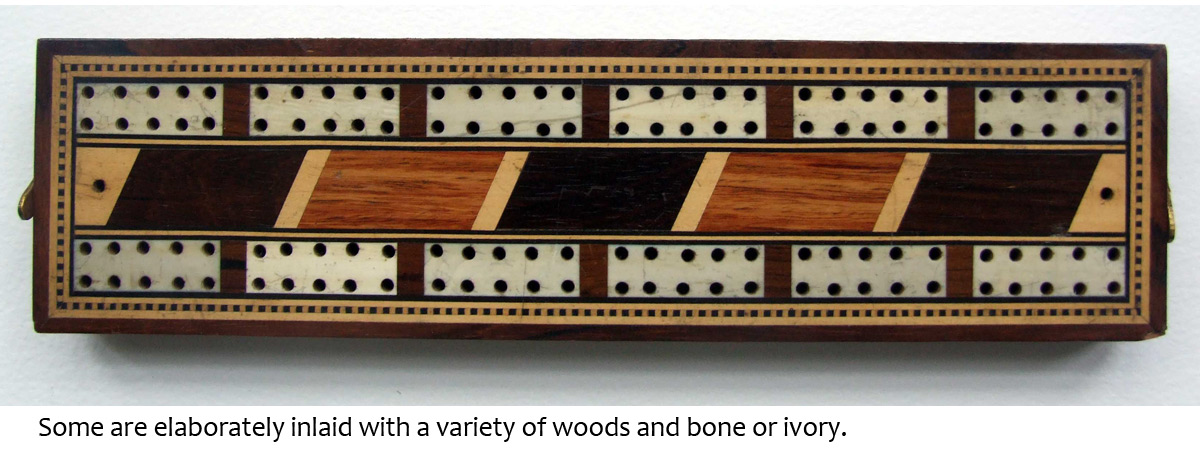 Above: a beautiful and tactile example of the cabinet-maker’s skill being applied to a cribbage board. From the collection of Tony Hall.