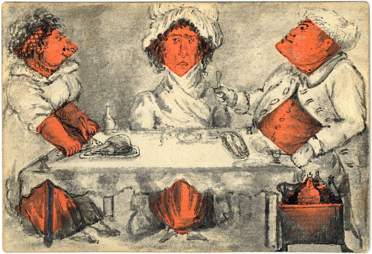 Some of the images are copied from English printed packs but most are original, which supports the theory that drawing transformations on playing cards was originally a Georgian parlour game. Several images also appear to have inspired later transformation packs.