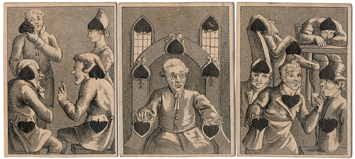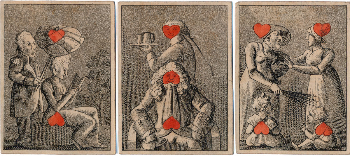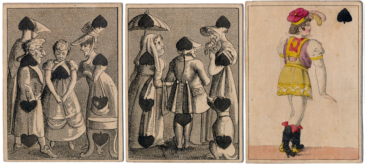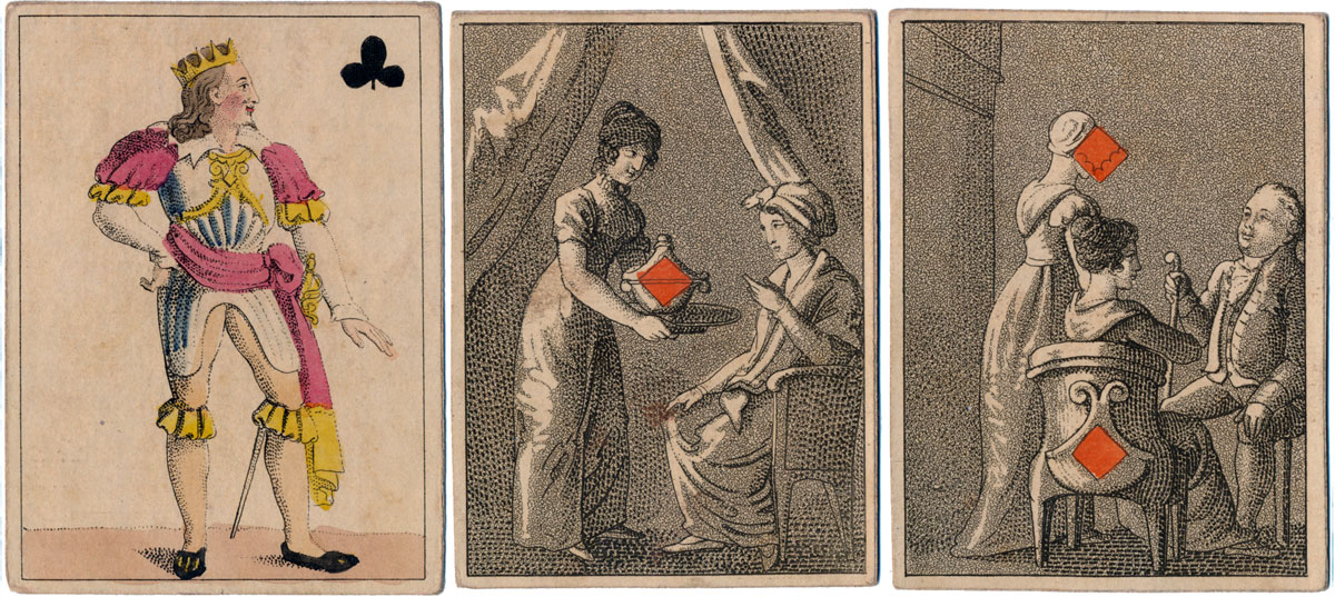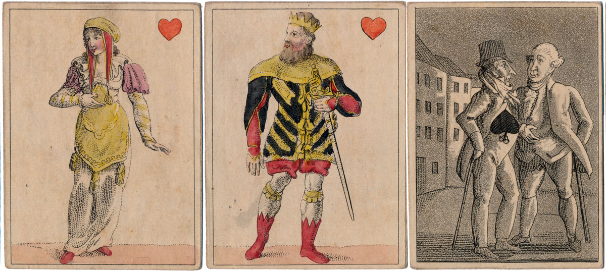 An early 19th century set of hand-painted transformation playing cards depicting contemporary scenes...