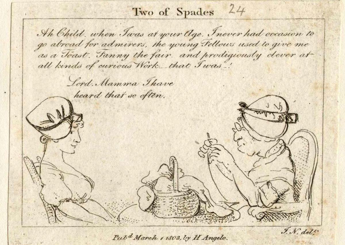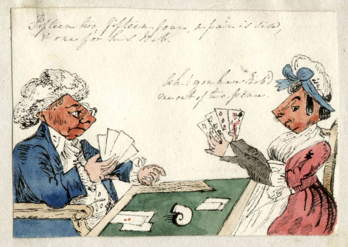 An early 19th century set of hand-painted transformation playing cards depicting contemporary scenes...