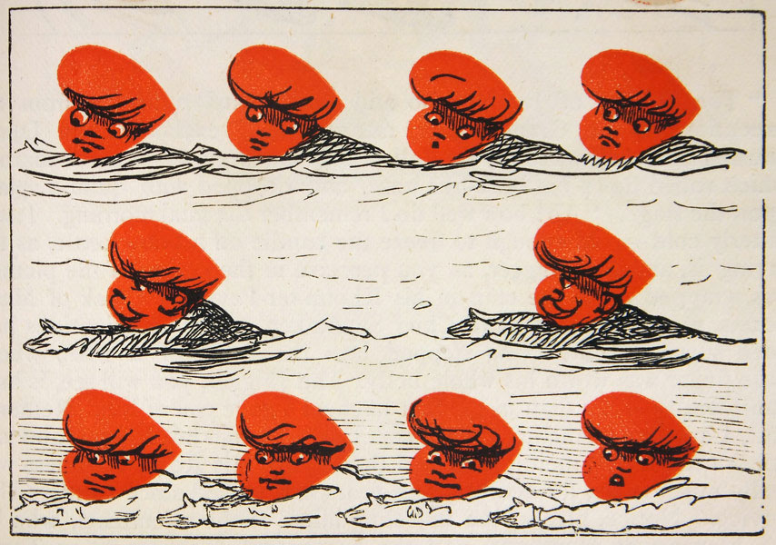 Above: Unfortunately the ink of the pips has on some pages ‘bled’ through the paper, which can be seen in several images. There are actually no cards, just illustrations in the book. The designs were never made into a separate pack of cards. Images courtesy Barney Townshend.