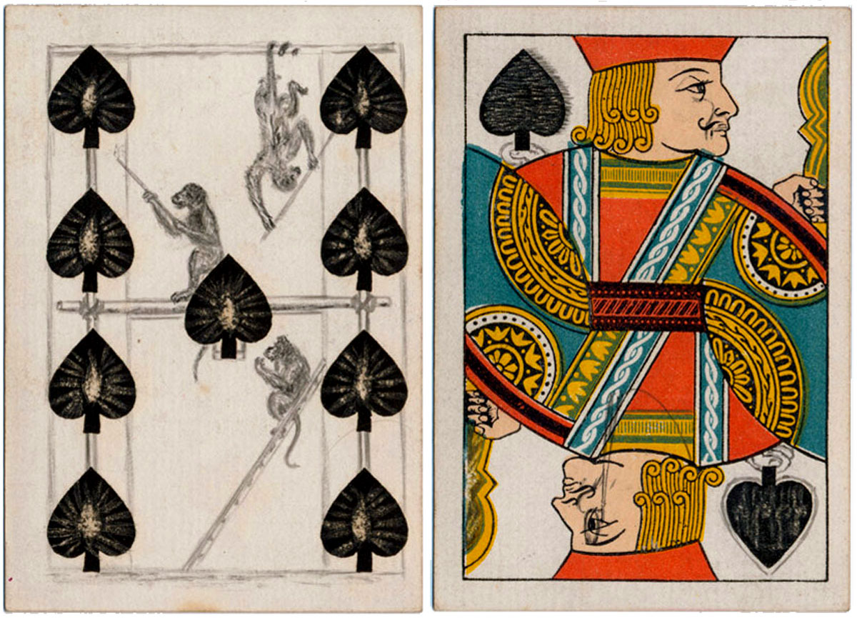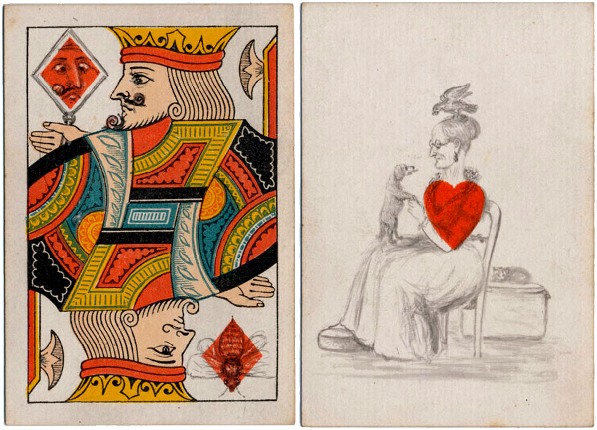 Transformation playing cards hand-drawn on a pack manufactured by Hunt’s Playing Card Manufacturing ...