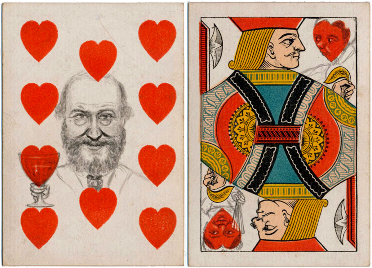Transformation playing cards by William Makepeace Thackeray, 1876.