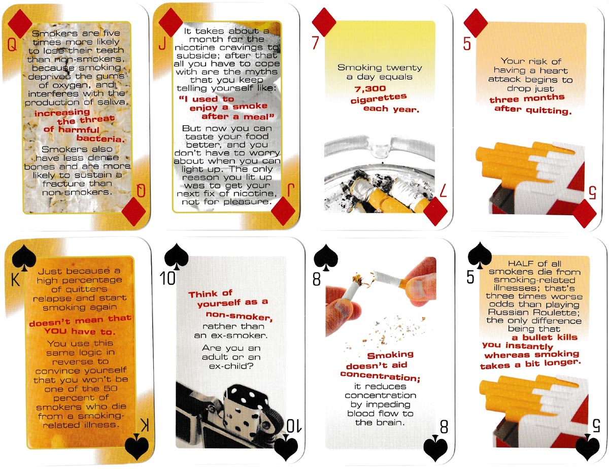 Above: “52 ways to stop smoking” playing cards published by That Company Called If, Pickering, Yorkshire, UK.