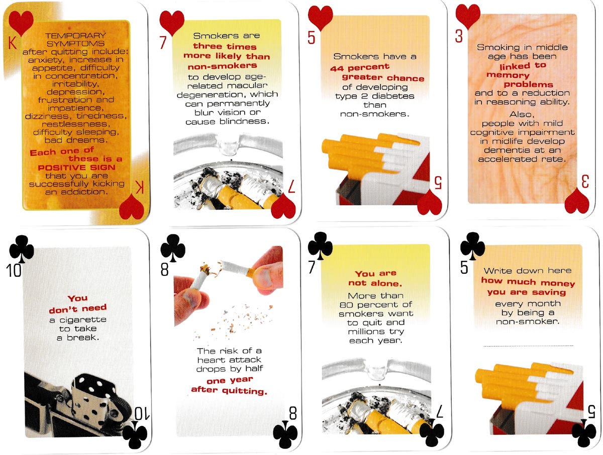 “Lose the smoke Keep the fire” playing cards to help quit smoking, published by Nicotinell, 2007.