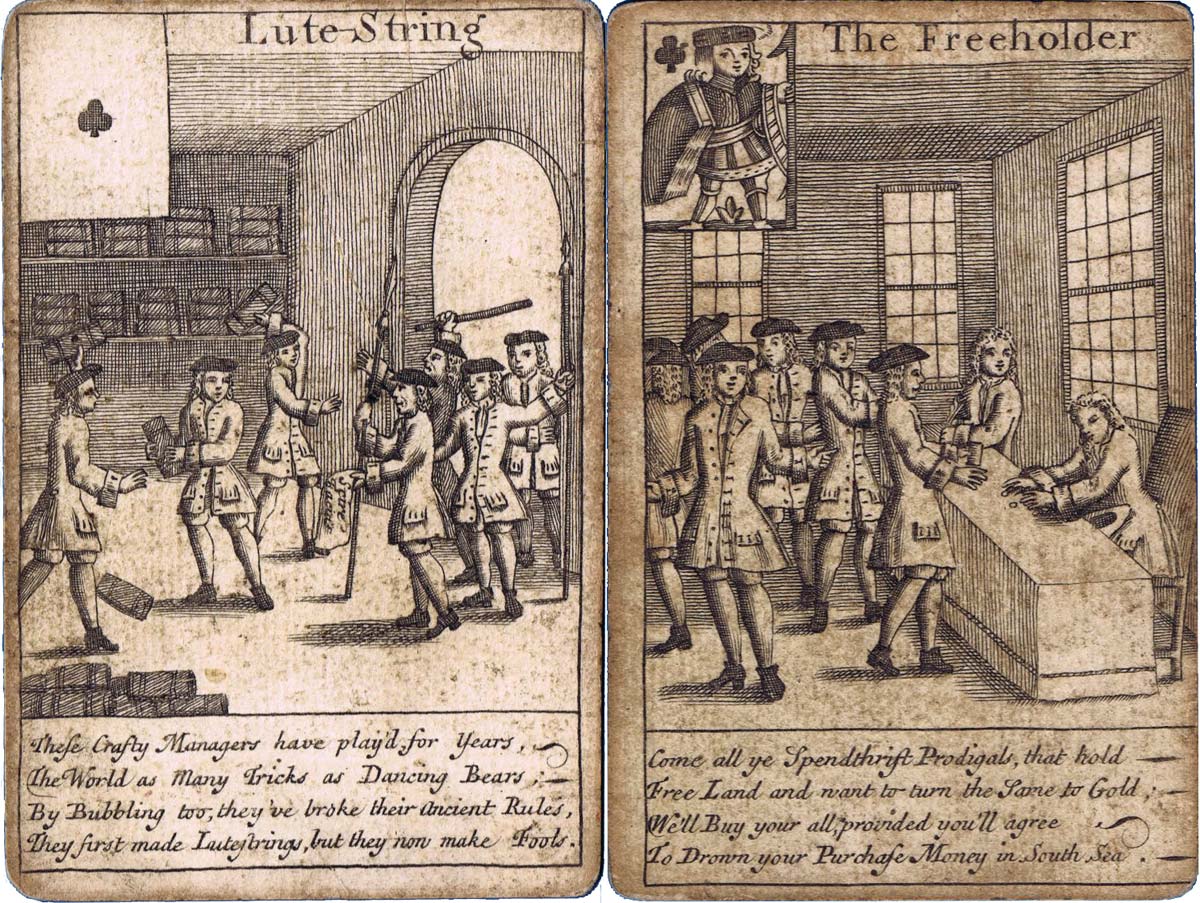 The South Sea Bubble Playing Cards were first published in London by Thomas Bowles in 1720. The card...