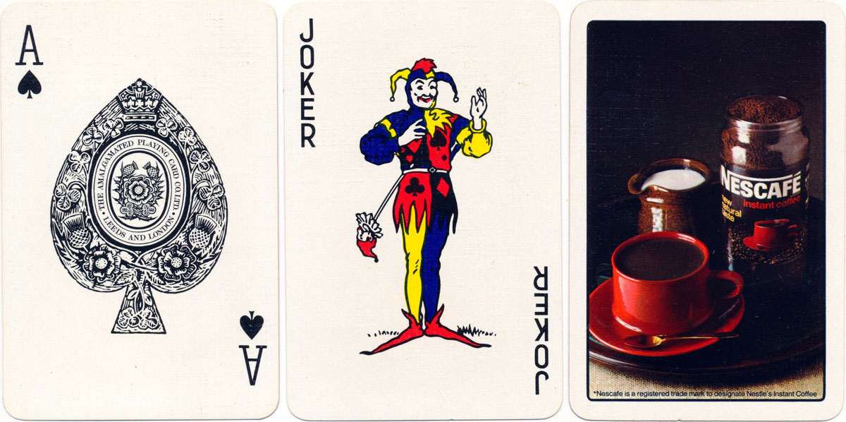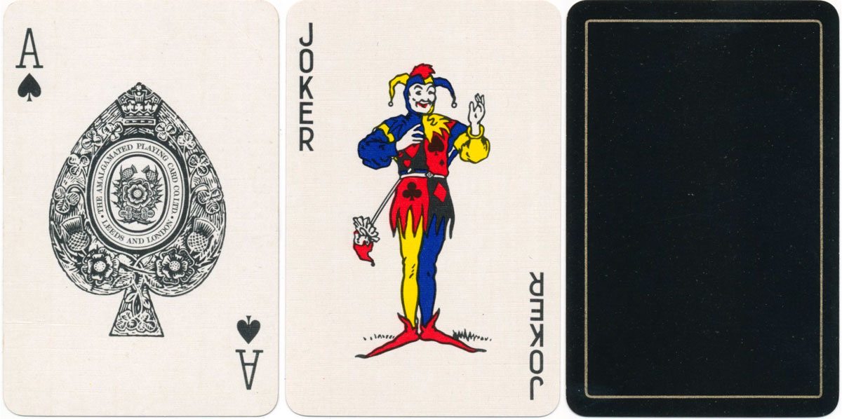 In 1962 Waddington's and De La Rue therefore joined forces and re-launched the Amalgamated Playing Card Co., seeking to consolidate their efforts in the home market. However, De La Rue's involvement gradually declined so that sales were subsequently handled by Waddingtons and the Amalgamated Playing Card Co. between them. During this period hundreds of packs are known to have been produced for casinos, clubs and general advertising with the legend 'The Amalgamated Playing Card Co. Ltd - Leeds and London' on the ace of spades. In 1971 Waddington's purchased De La Rue's share of APCC, thus becoming the sole manufacturer of playing cards in the UK at that time.