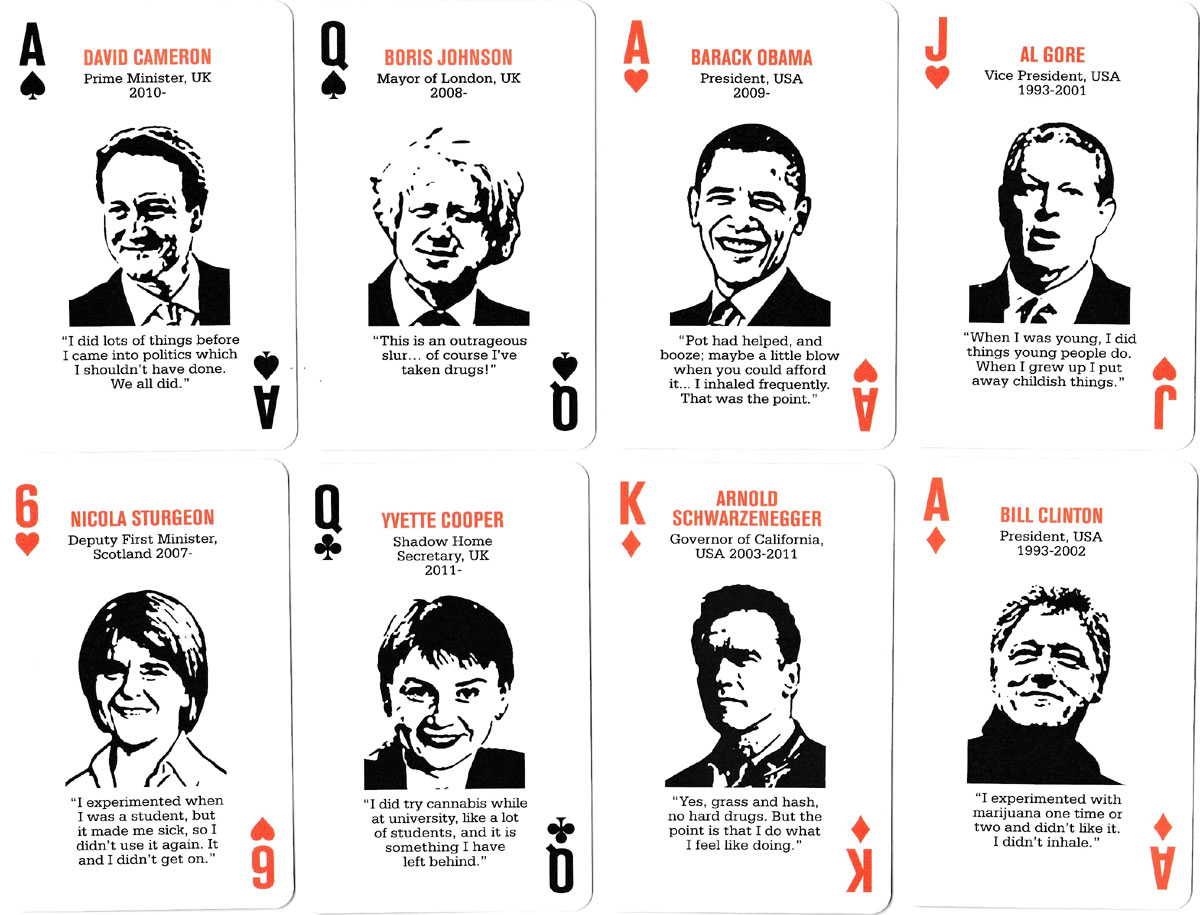 Above: “Better drug laws now” campaign playing cards issued by Release, United Kingdom. Undated, c.2012.