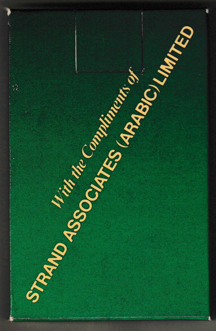 Above: pack for "Strand Associates (Arabic) Limited", which is the name on the box and the backs of the cards. (See the box). The date 1980 appears on one side of the extra card. The indices are in Arabic. It has two Aces of Spades - one plain and one decorated. I first purchased 30 of these packs in November 1980 while still working at Stanley Gibbons. The supplier was David Westnedge who (I think) probably arranged for the packs to be produced by Carta Mundi. Image and notes courtesy Roddy Somerville.