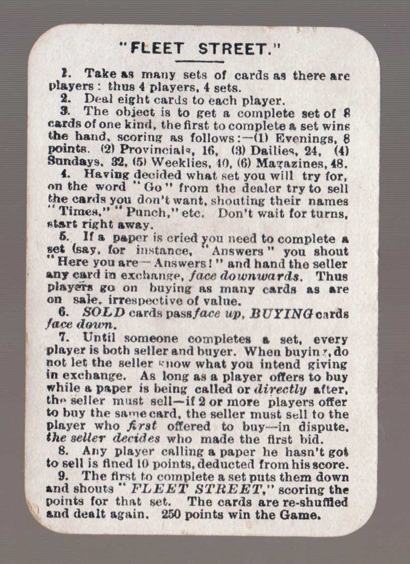 “Fleet Street” card game published by Chad Valley Games, c.1923.