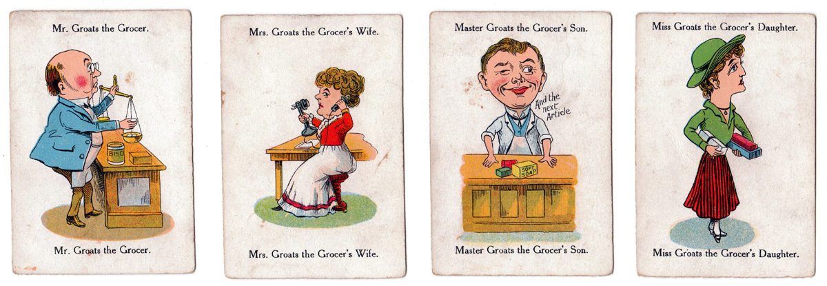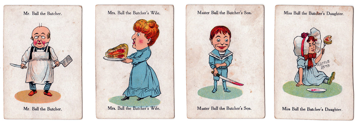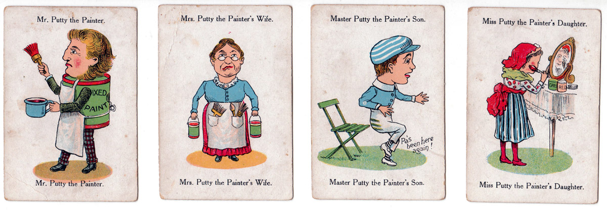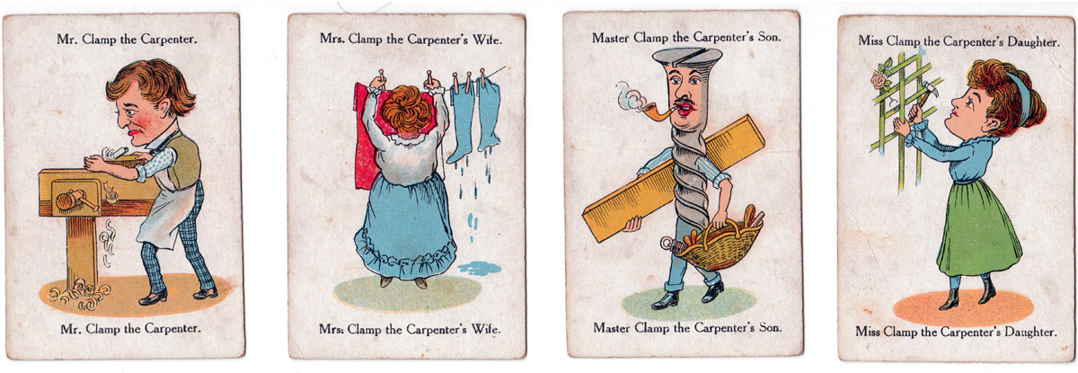 Above: “Happy Families” game published by Chad Valley Co., c.1930, drawn in the slightly grotesque style of the Victorian era. Images courtesy Rex Pitts.