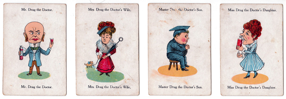 Above: box from “Happy Families” game published by Chad Valley Co. drawn in the slightly grotesque style of the Victorian era. Image courtesy Matt Probert.