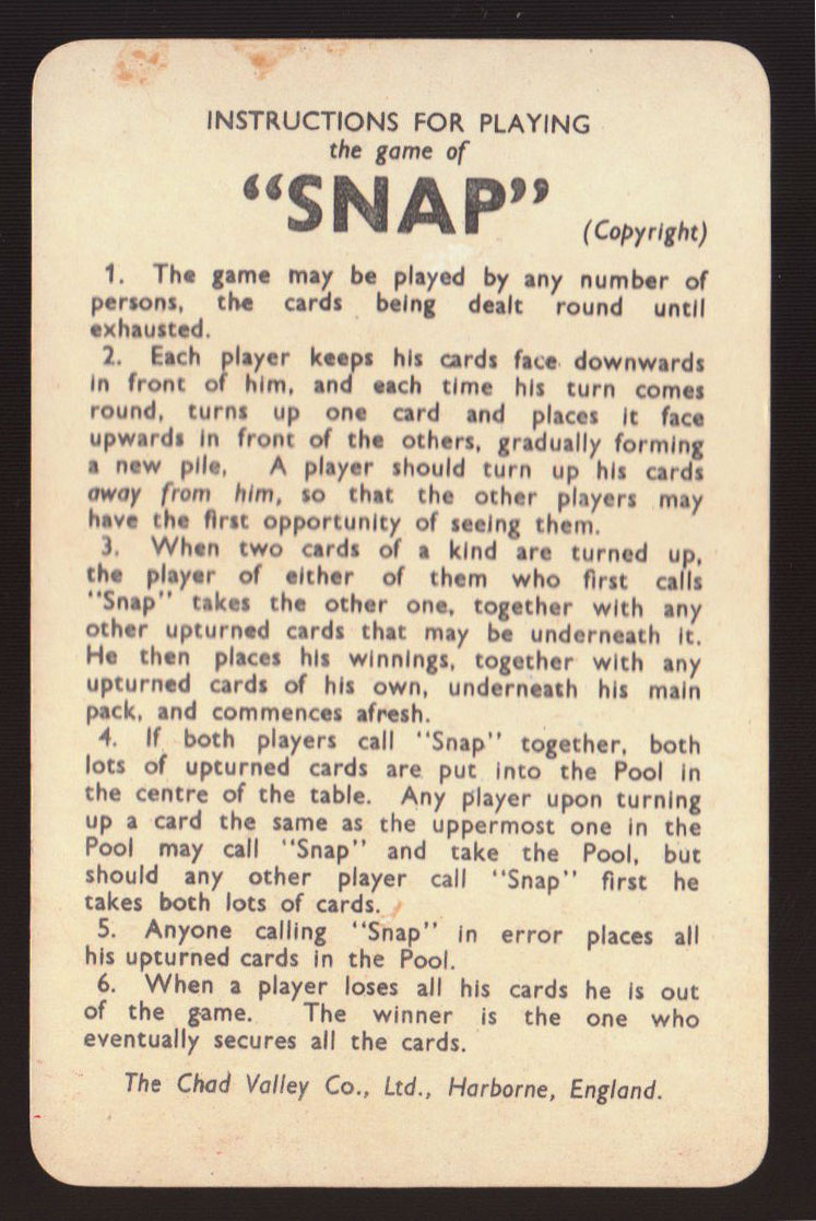 Chad Valley Special Edition ‘Snap’ card game, 1912.