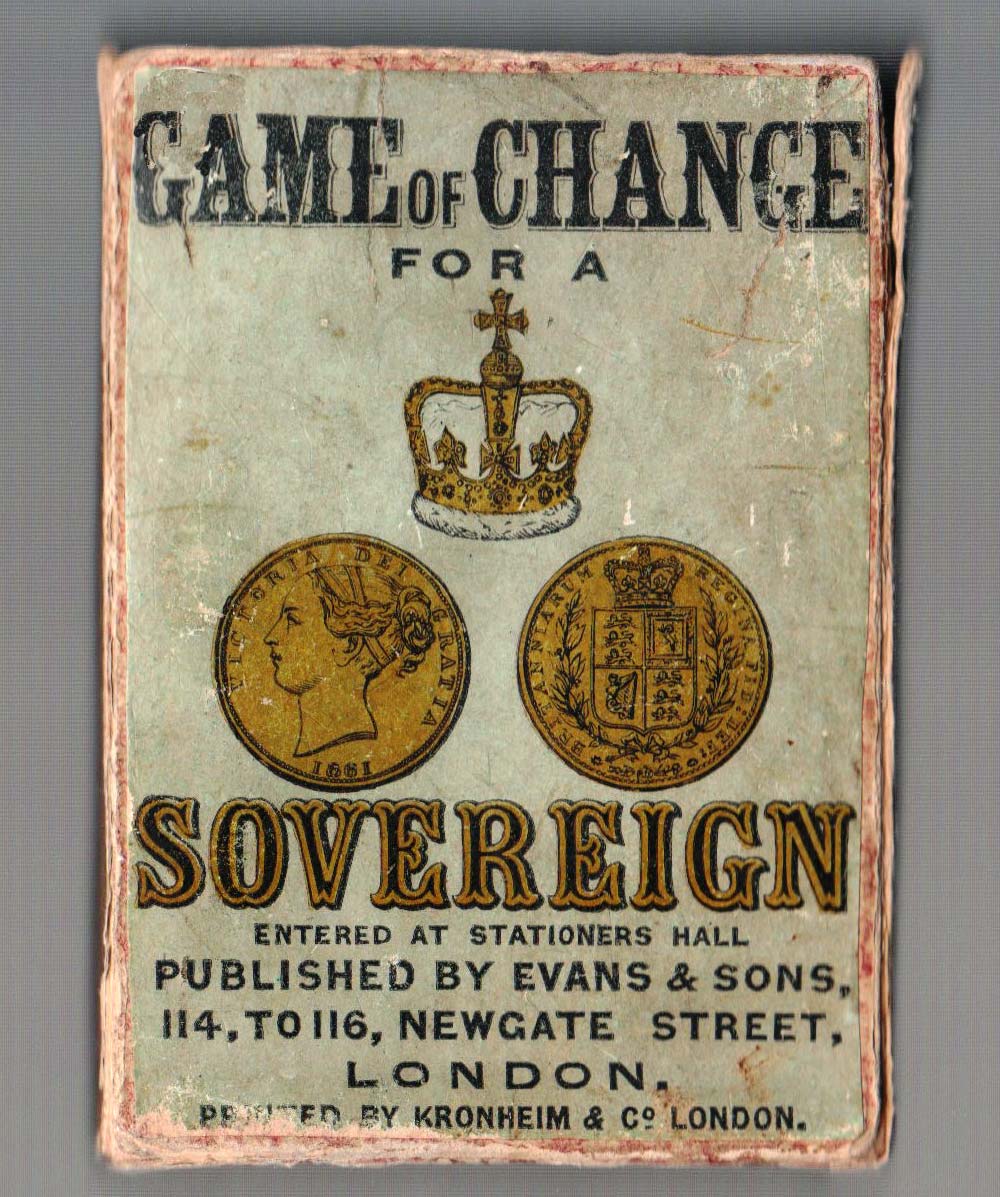 Change for a Sovereign - a card game published by J Evans & Sons, Newgate Street, London and printed by Kronheim & Co., London, designed to teach children about the value of money of the time.