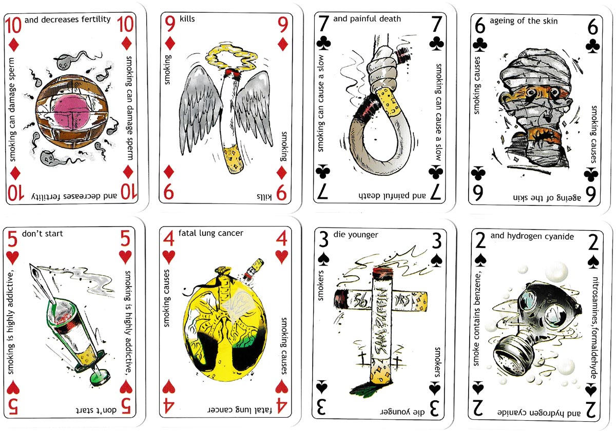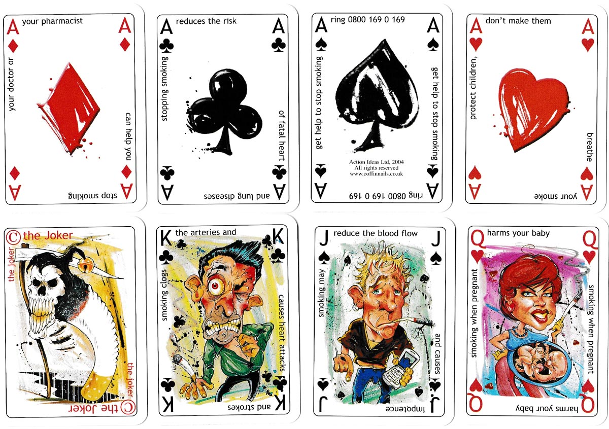 Above: “Coffinnails: Smoking Kills” playing cards, ©Action Ideas Ltd, UK, 2004.