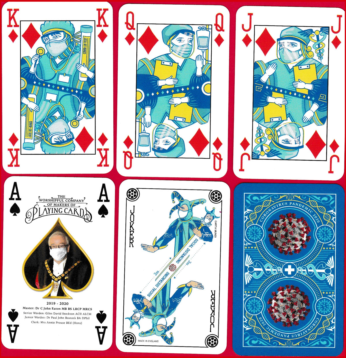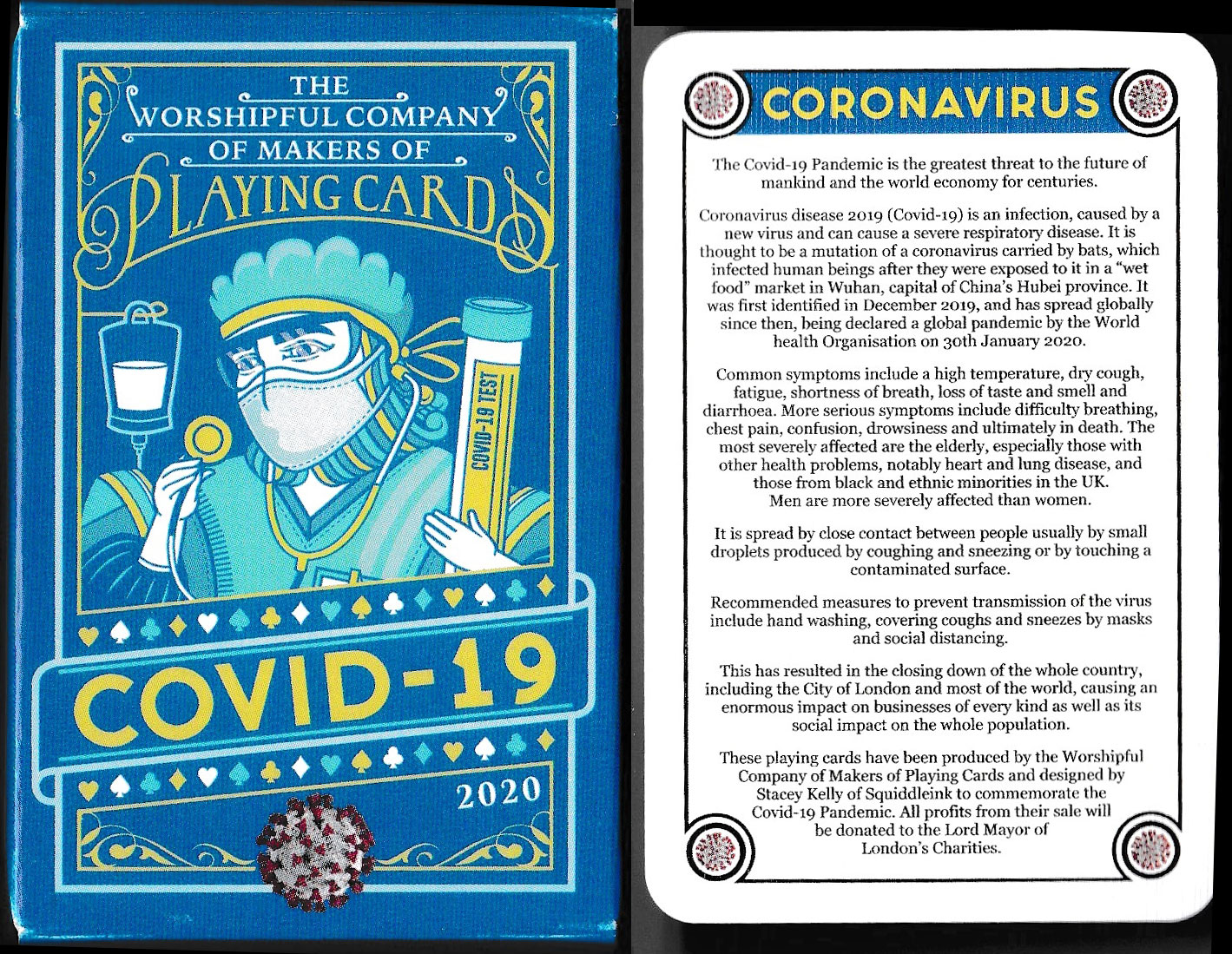 Above: Covid-19 playing cards designed by Stacey Kelly and produced by the Worshipful Company of Makers of Playing Cards, 2020.
