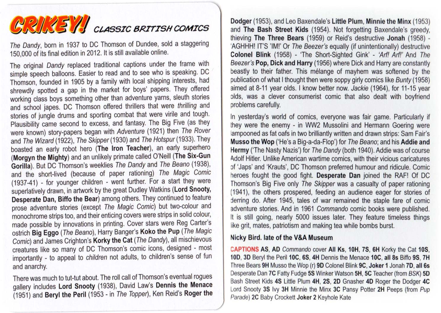Crikey! Classic British Comics playing cards published by Bird Playing Cards, 2013.