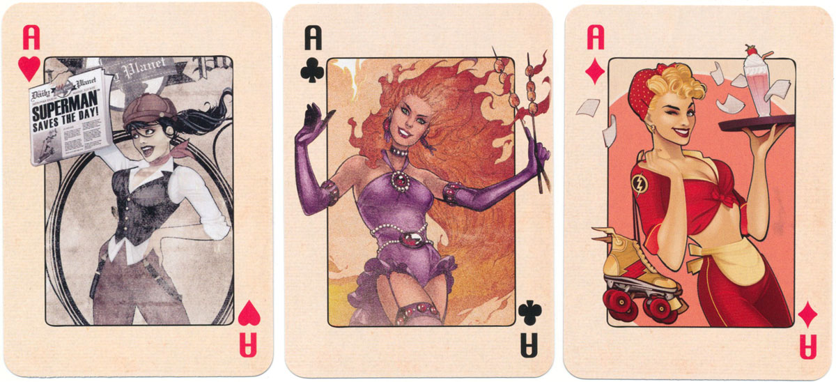 Stylish playing cards featuring the glamorous, superpowered female stars of the alternate reality world of DC Comics, published by 'Forbidden Planet', 2015
