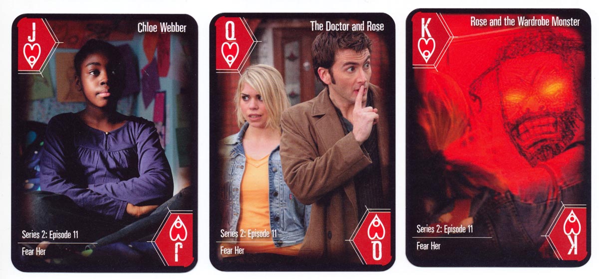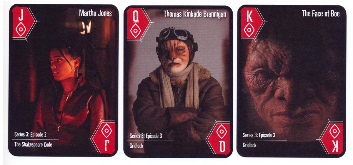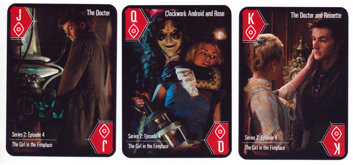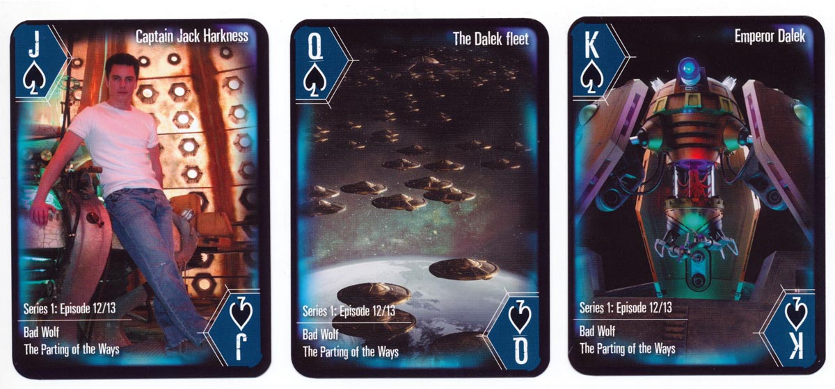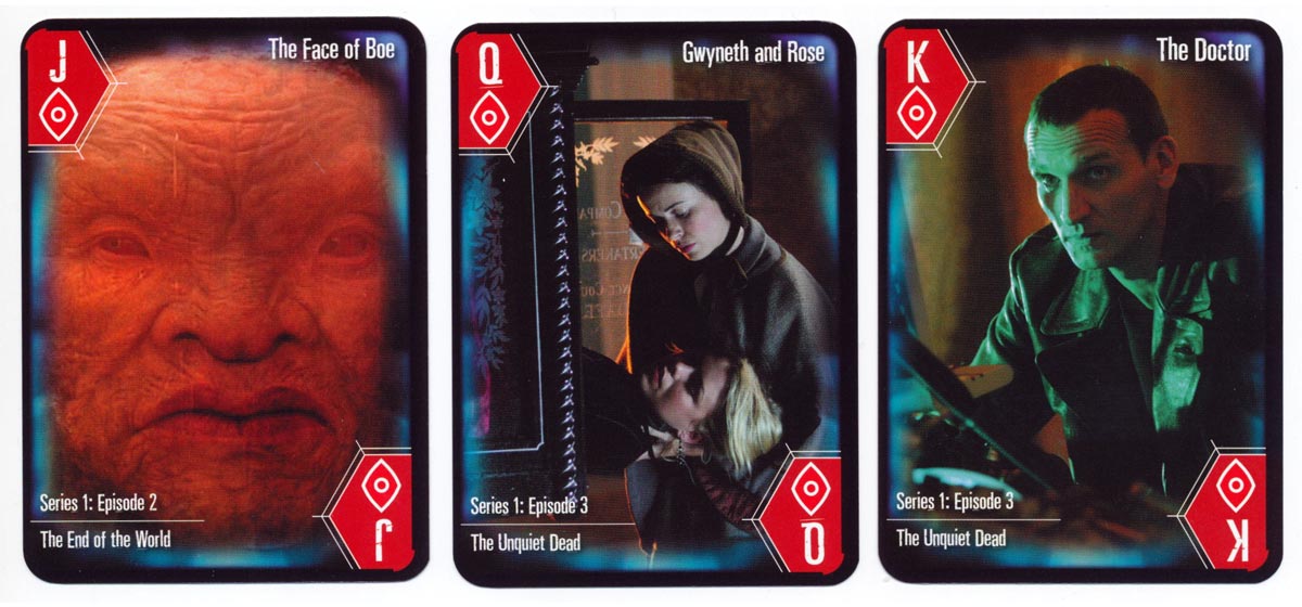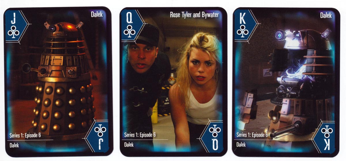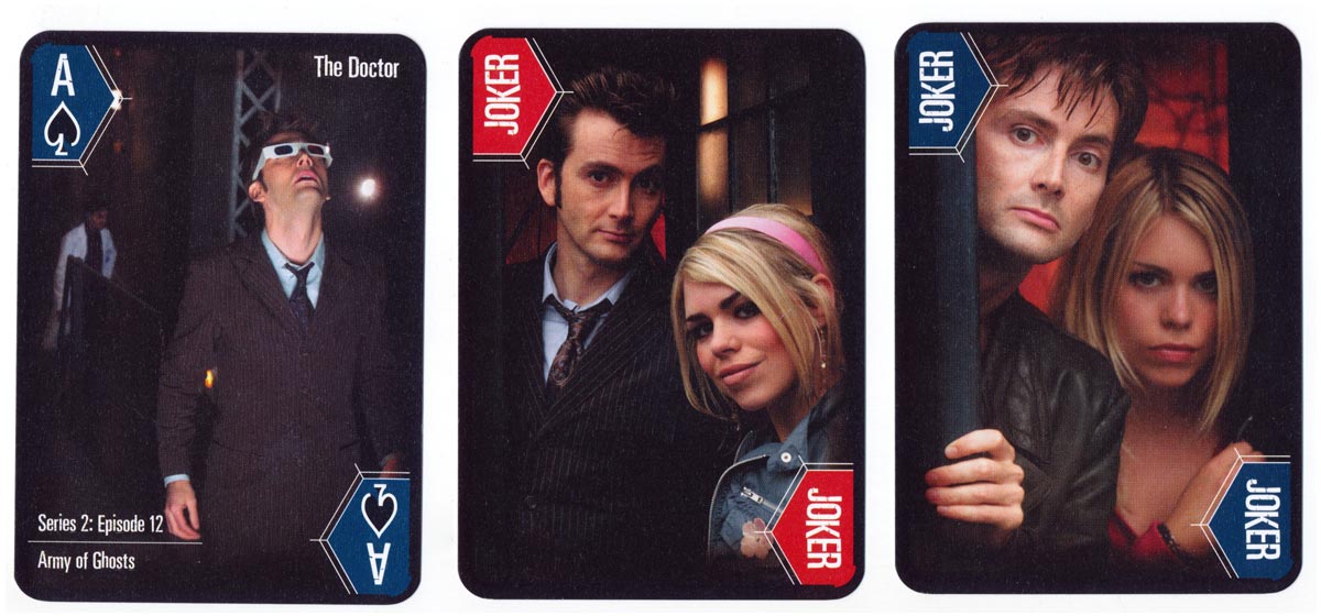 Three series of ‘Doctor Who’ playing cards captured the moments from the different episodes. Series 1 features 54 illustrated collectors playing cards featuring the ninth incarnation of the Doctor (Christopher Ecclestone) and introducing Rose Tyler, his companion in time and space. Series 2 & 3 feature the tenth Doctor (David Tennant) and his companions coming face to face with the terrors of the Universe.