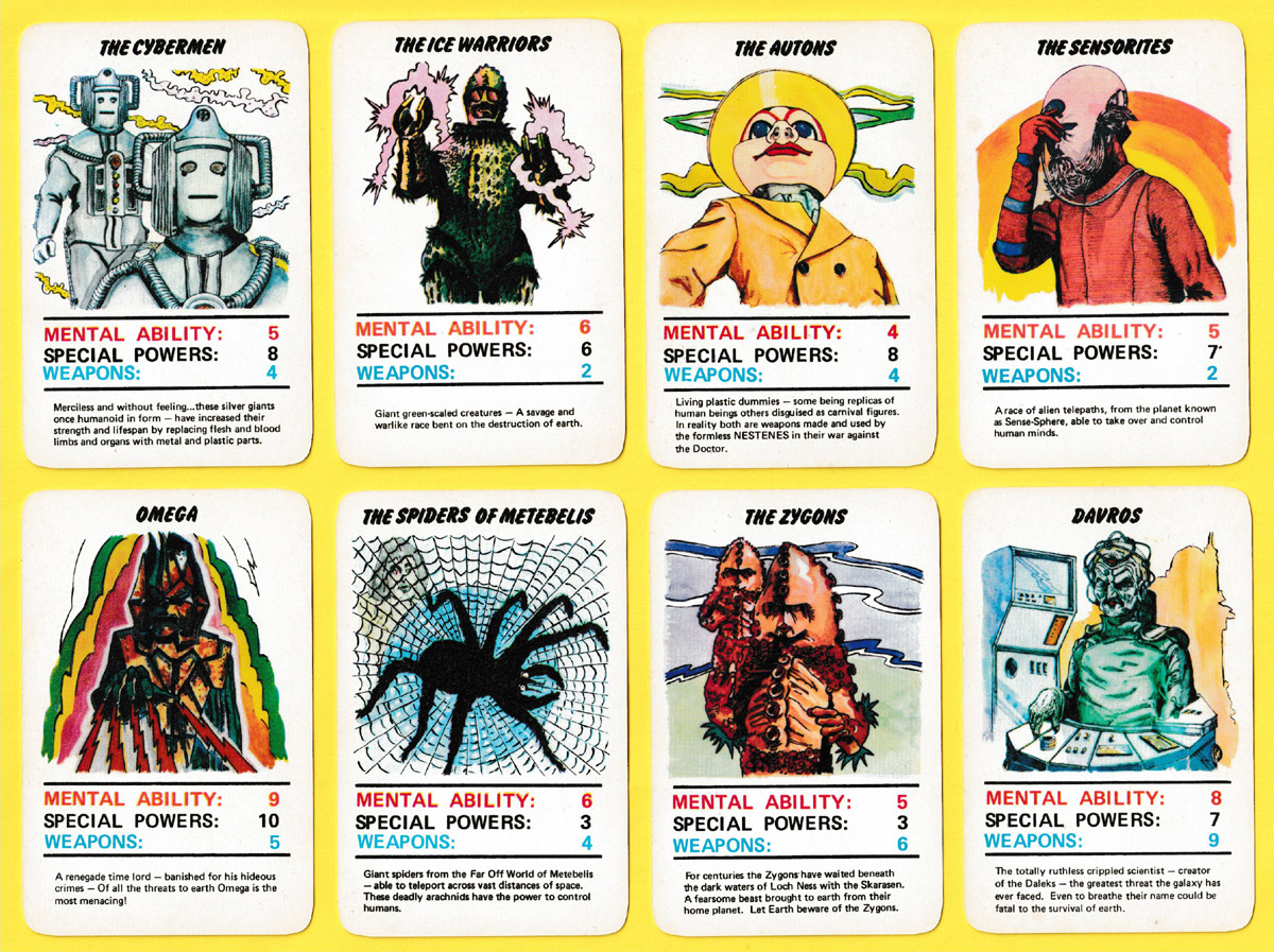 Doctor Who fan cards produced by Winning Moves under the Waddington's label, 2015.