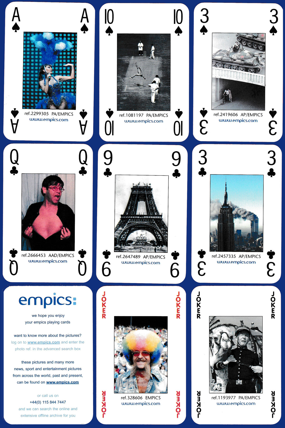 Above: Empics playing cards published by PA Images, UK (undated).