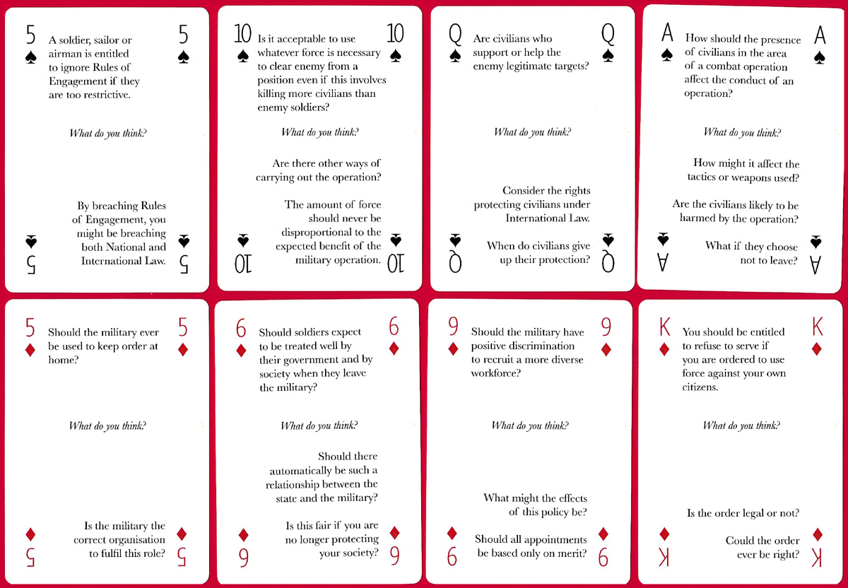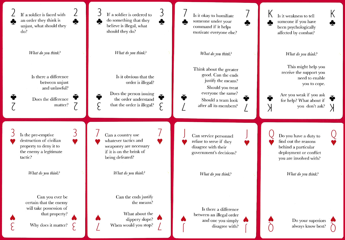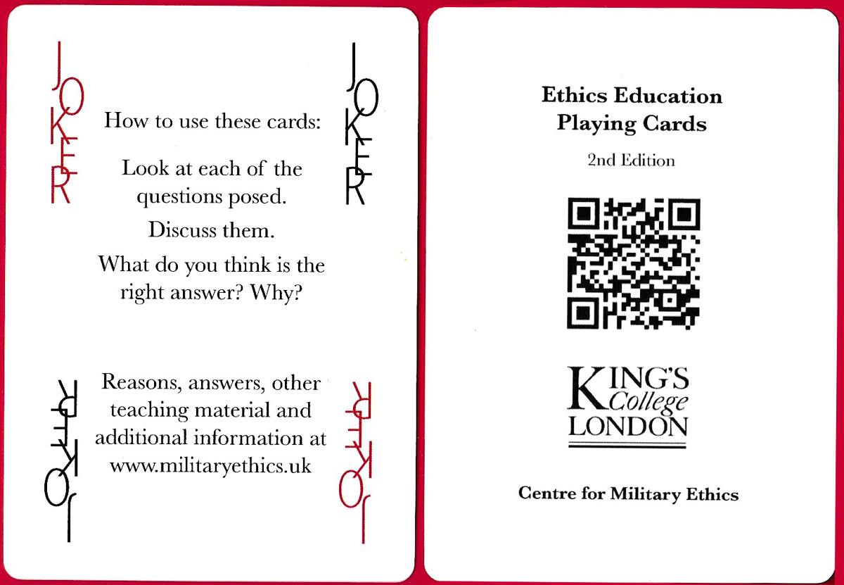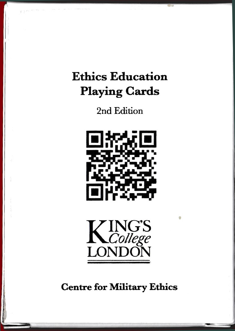 Above: Ethics Education playing cards produced by the Centre for Military Ethics at King’s College London, 2016 (2nd edition).
