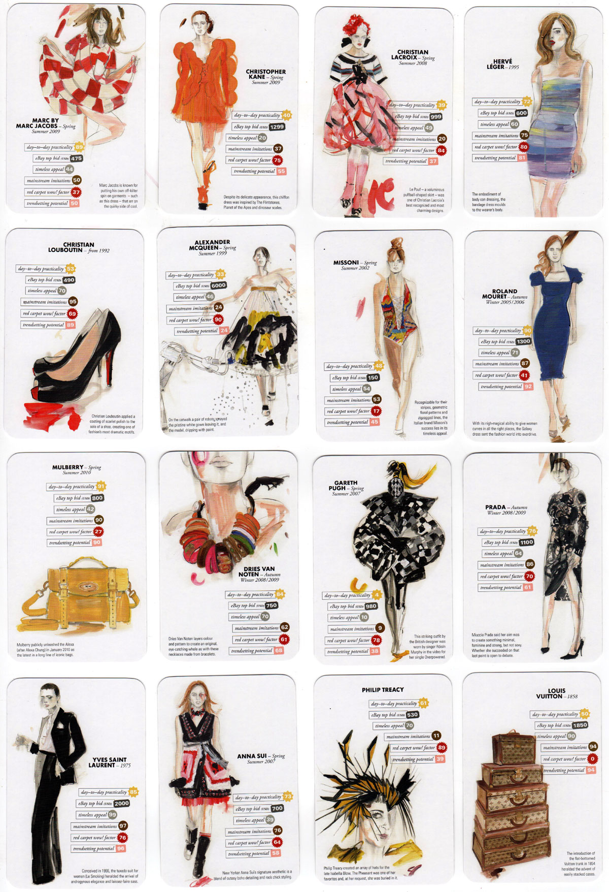 “Fashion Face Off” card game illustrated by Erin Petson for Laurence King Publishing, c.2011.