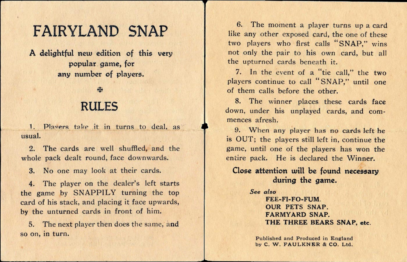 “Fairyland Snap” was designed by A. E. Kennedy and published by C. W. Faulkner & Co., c.1930s.