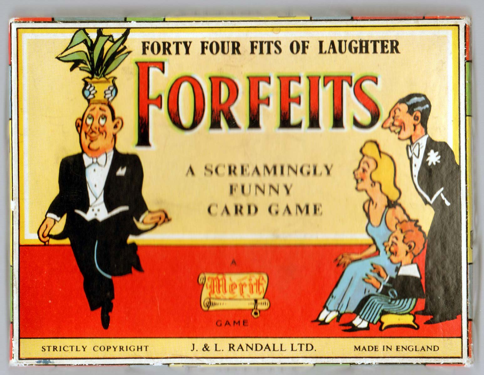 Forfeits party card game by Merit Games, J & L Randall Ltd, c.1950.
