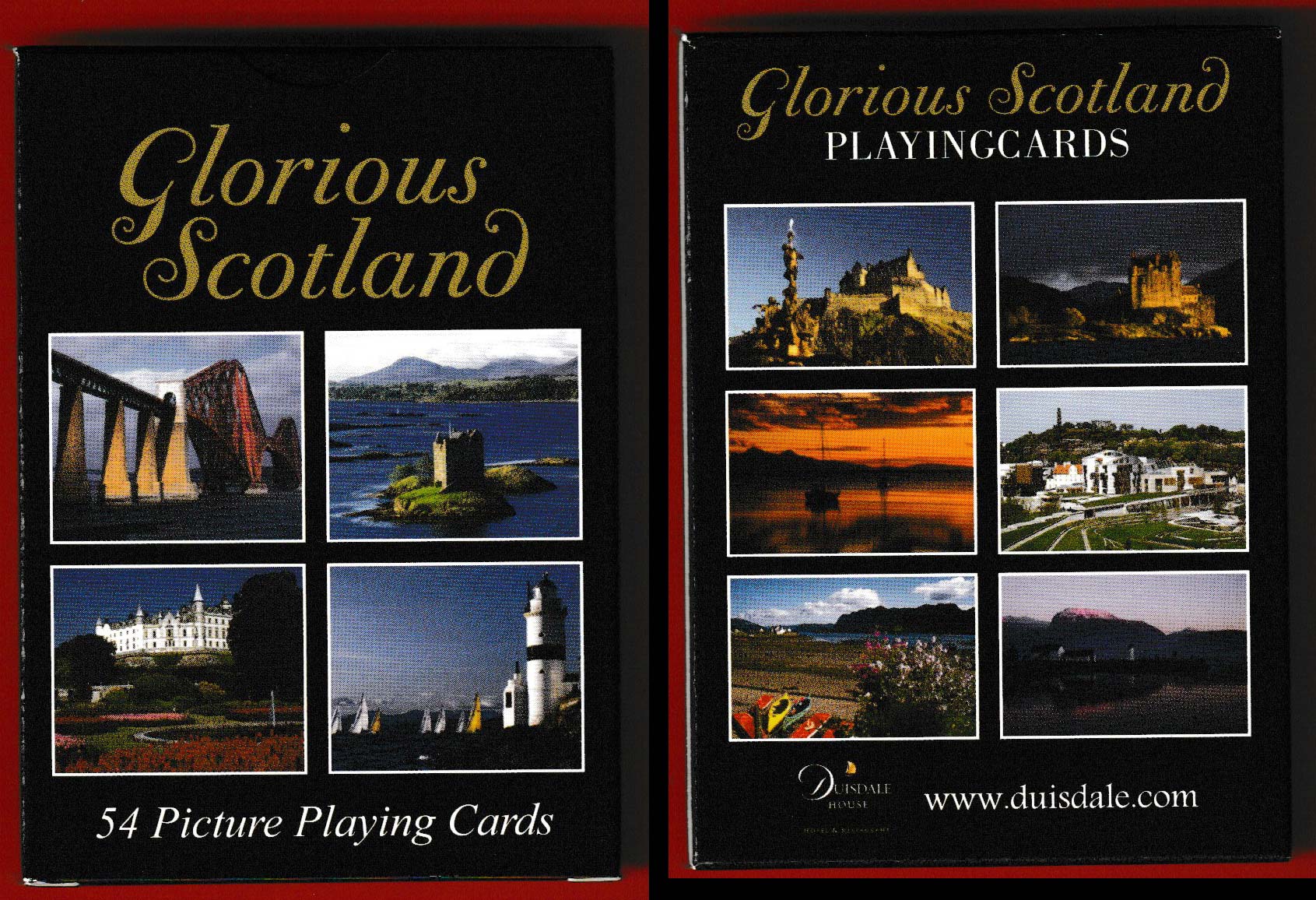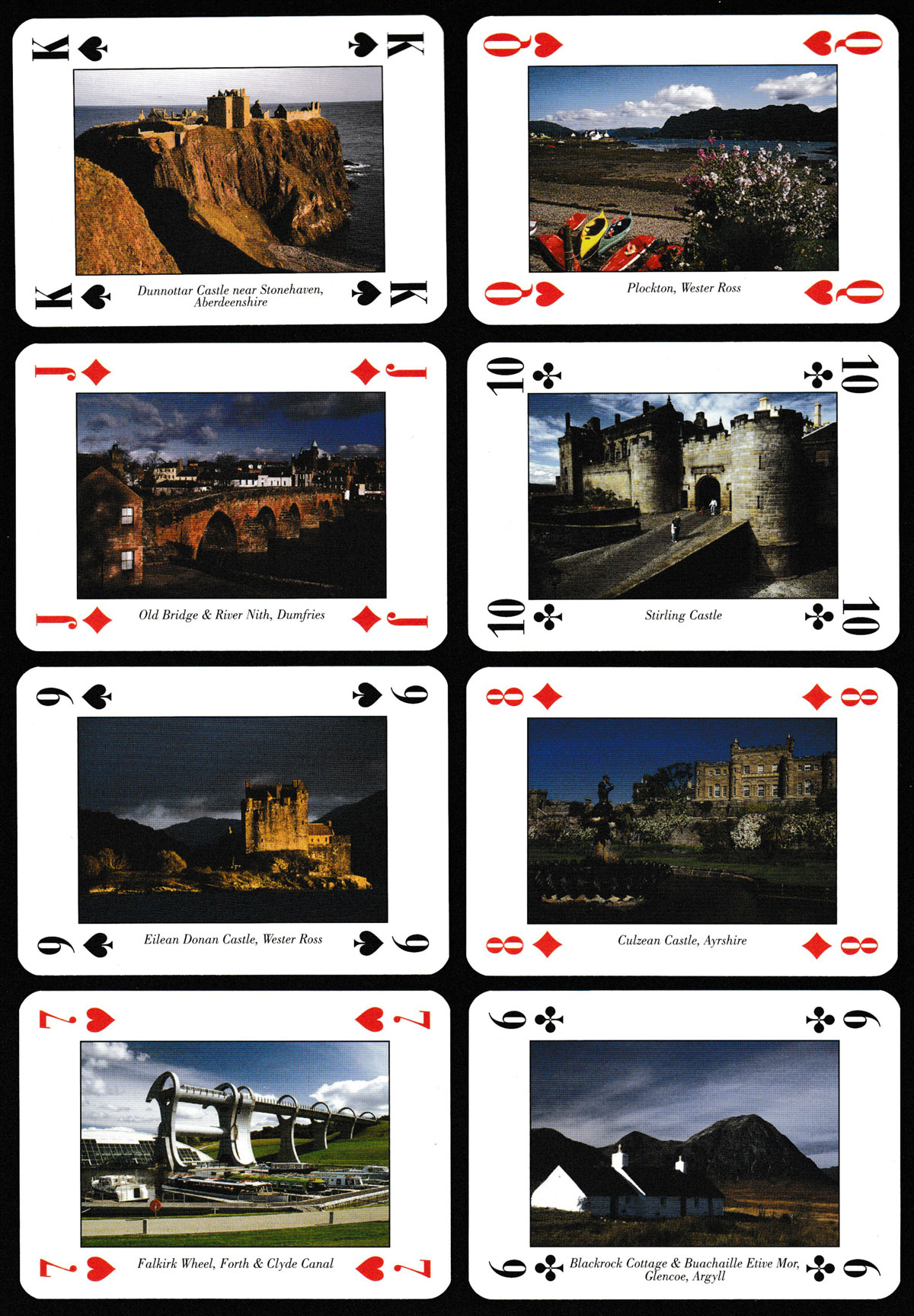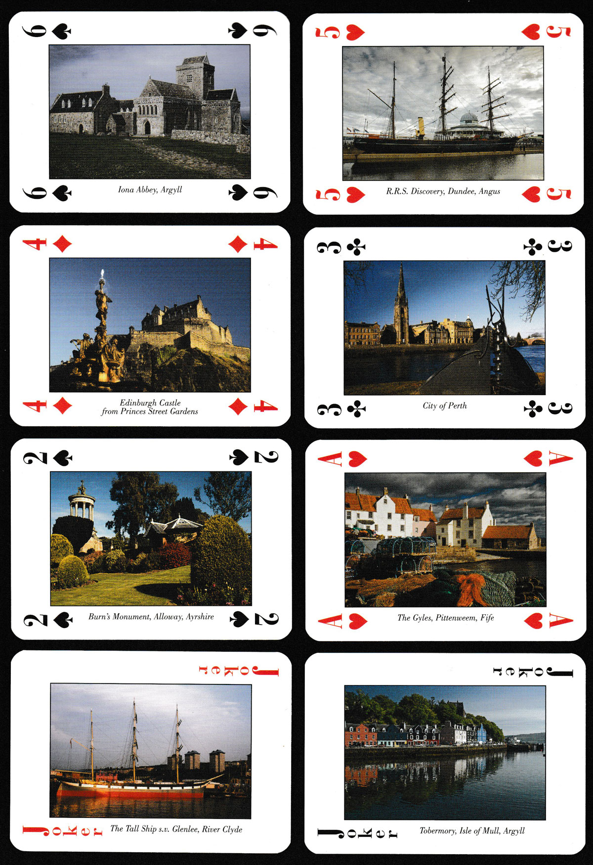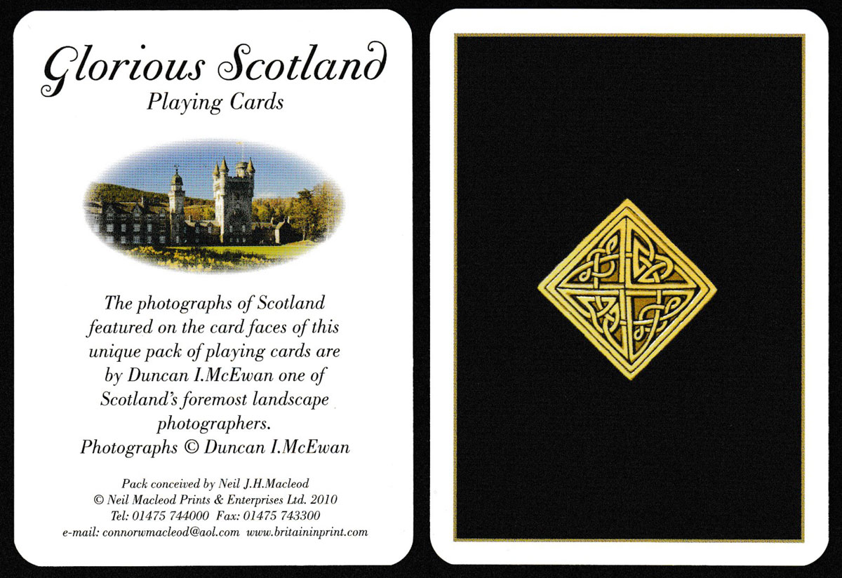 Above: Glorious Scotland souvenir playing cards published by Neil Macleod Prints & Enterprises Ltd, 2010. Probably printed by Cartamundi. 52 cards + 2 Jokers + 1 title card in tuck box. Size: 63 x 88 mm. ©Neil Macleod Prints & Enterprises Ltd. 2010. Photographs © Duncan I. McEwan 2010.