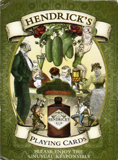 Above: advertising deck for Hendrick’s Gin, anonymous manufacturer, c.2015. The cards are embossed with a linen-effect finish, and are poker size.